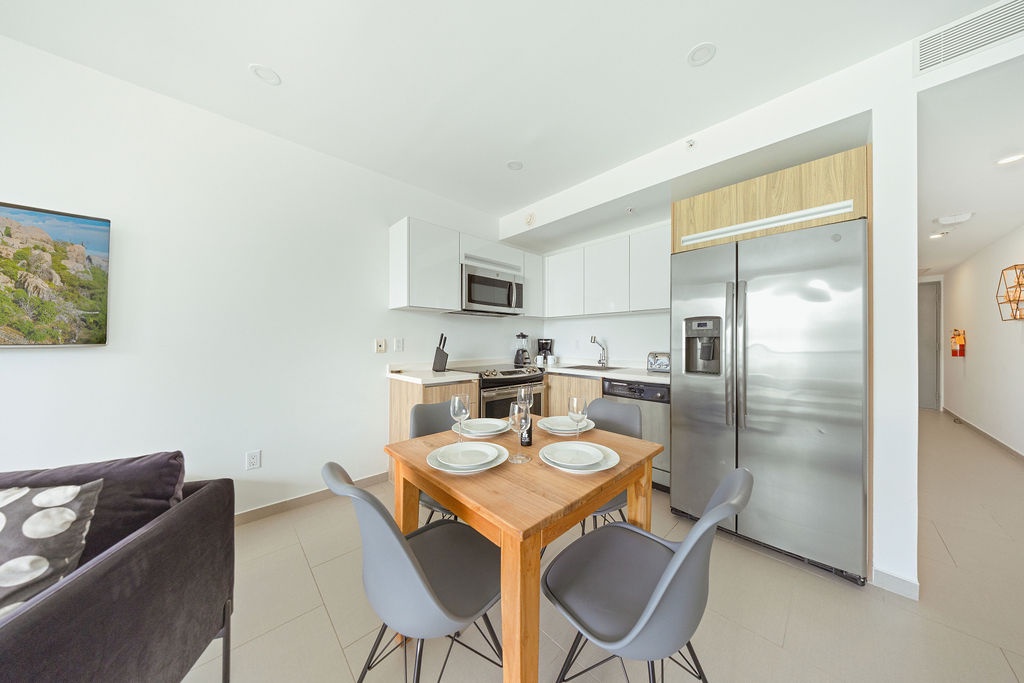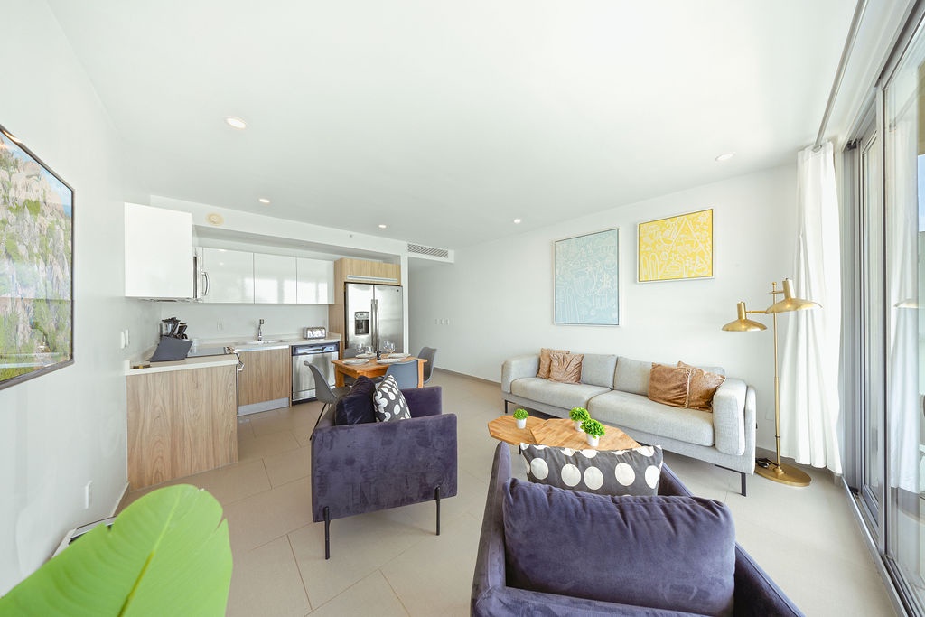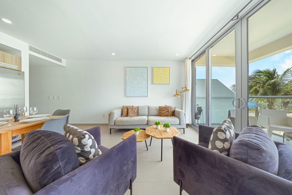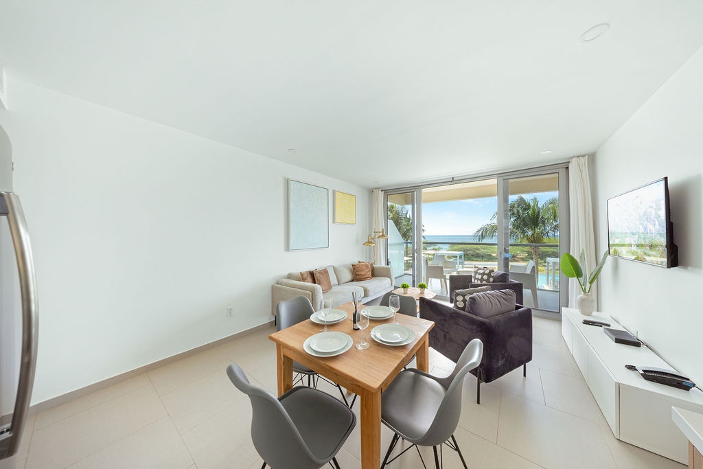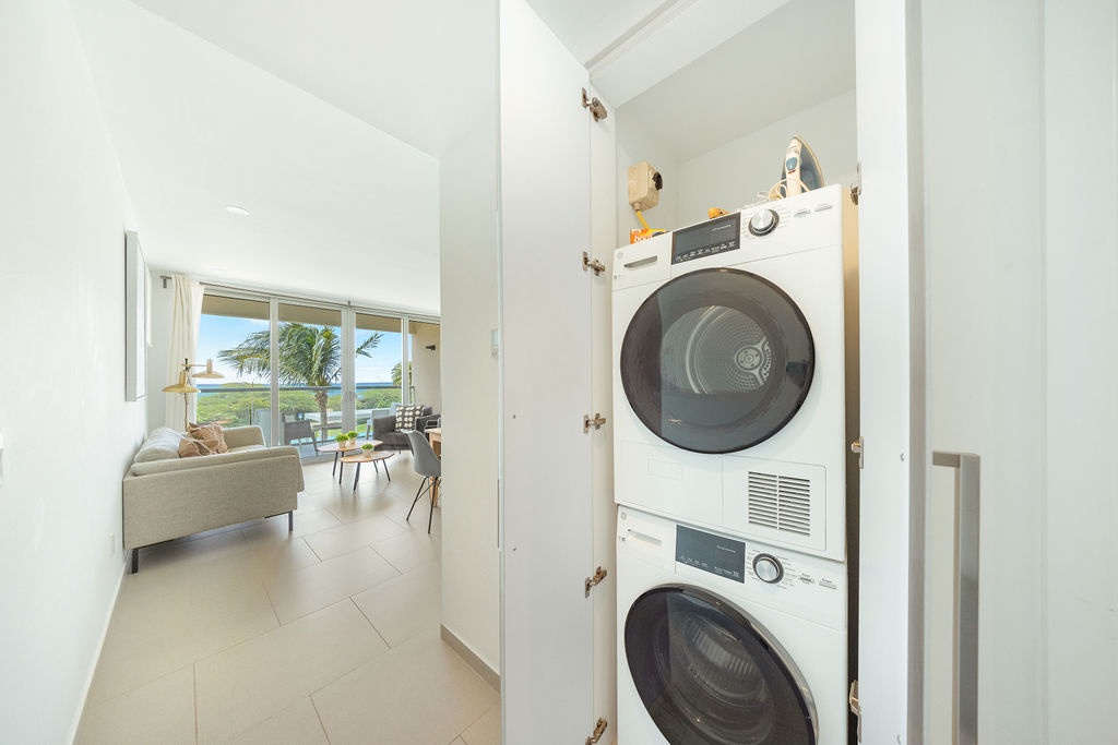 Enjoy the convenience of a private washer and dryer, high-speed Wi-Fi, and air conditioning throughout the apartment. The balcony is the perfect spot to sip your morning coffee while taking in the breathtaking views of the Caribbean Sea.