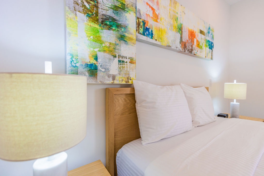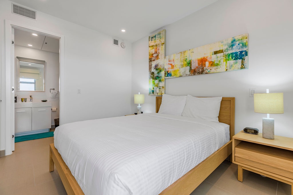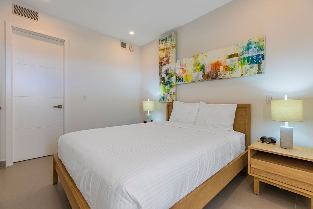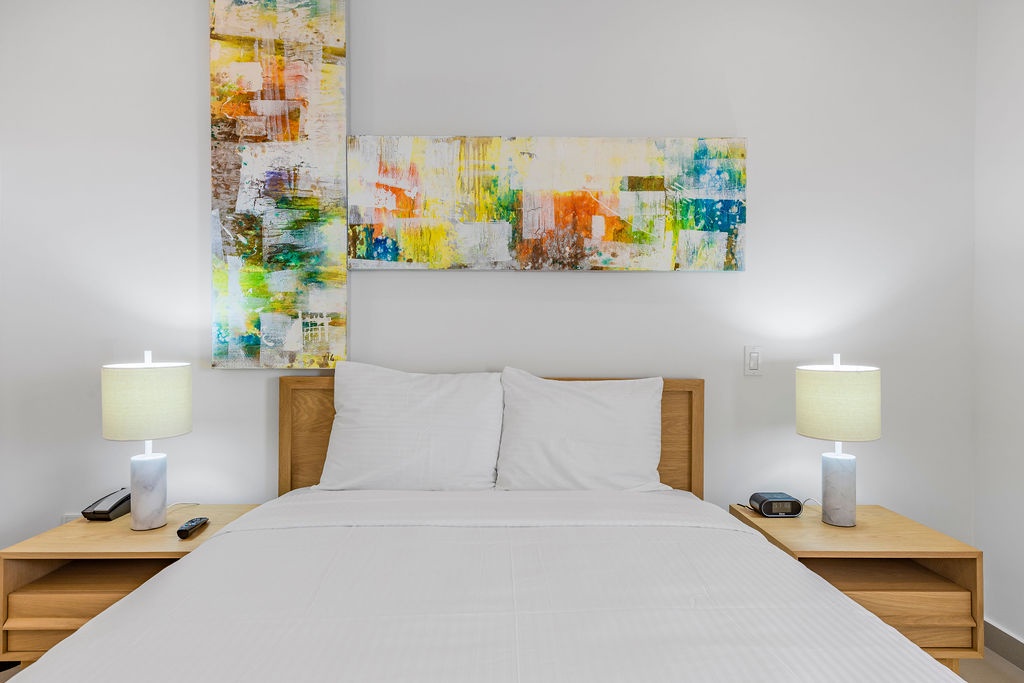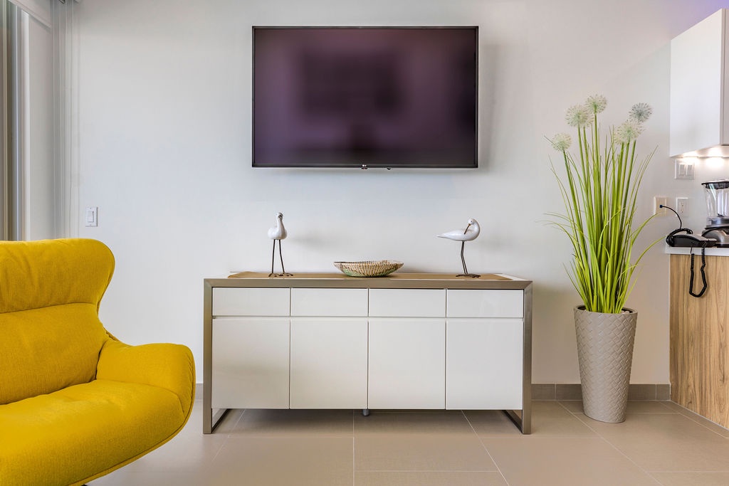 This air-conditioned one-bedroom suite features one king bed, one bathroom with shower, hairdryer, and a fully equipped kitchen, everything for basics cooking is in here. Dining/living area has the perfect combination for a view: the beautiful common areas of the complex and the Caribbean in the back. Washer and dryer in the unit. One step into the balcony through sliding doors and let’s drink a couple of wine enjoying the view, magnificent. Free Wi-Fi and TV in living room and bedroom.
