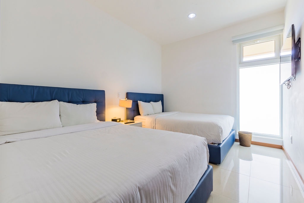 • An infinity pool and tropical deck create a relaxing environment at the center of the complex with poolside lounges and umbrellas from 8:00 am to 8:00 pm.