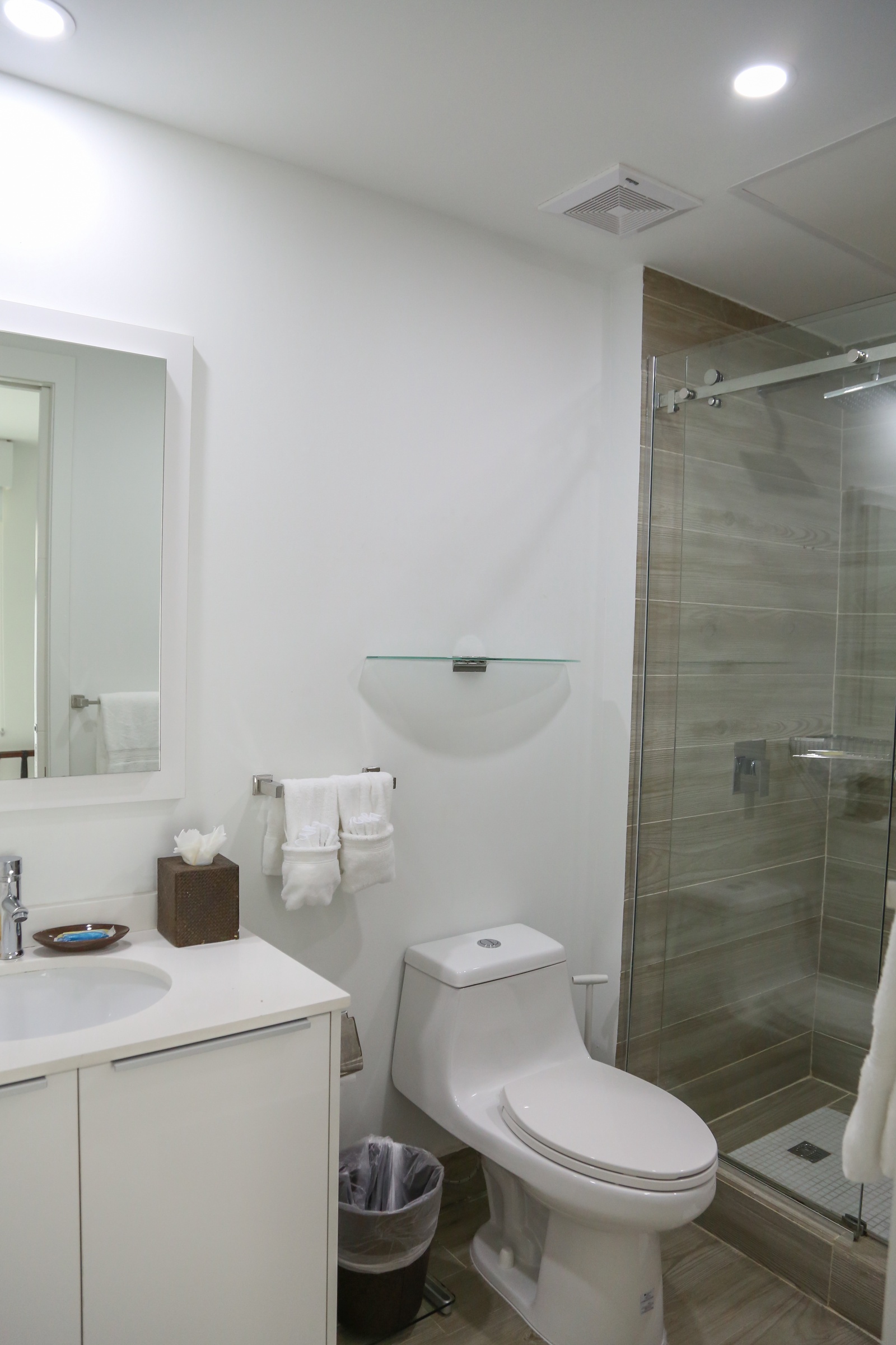 • Each bathroom has their own white towels and blue beach towels in the vanity.