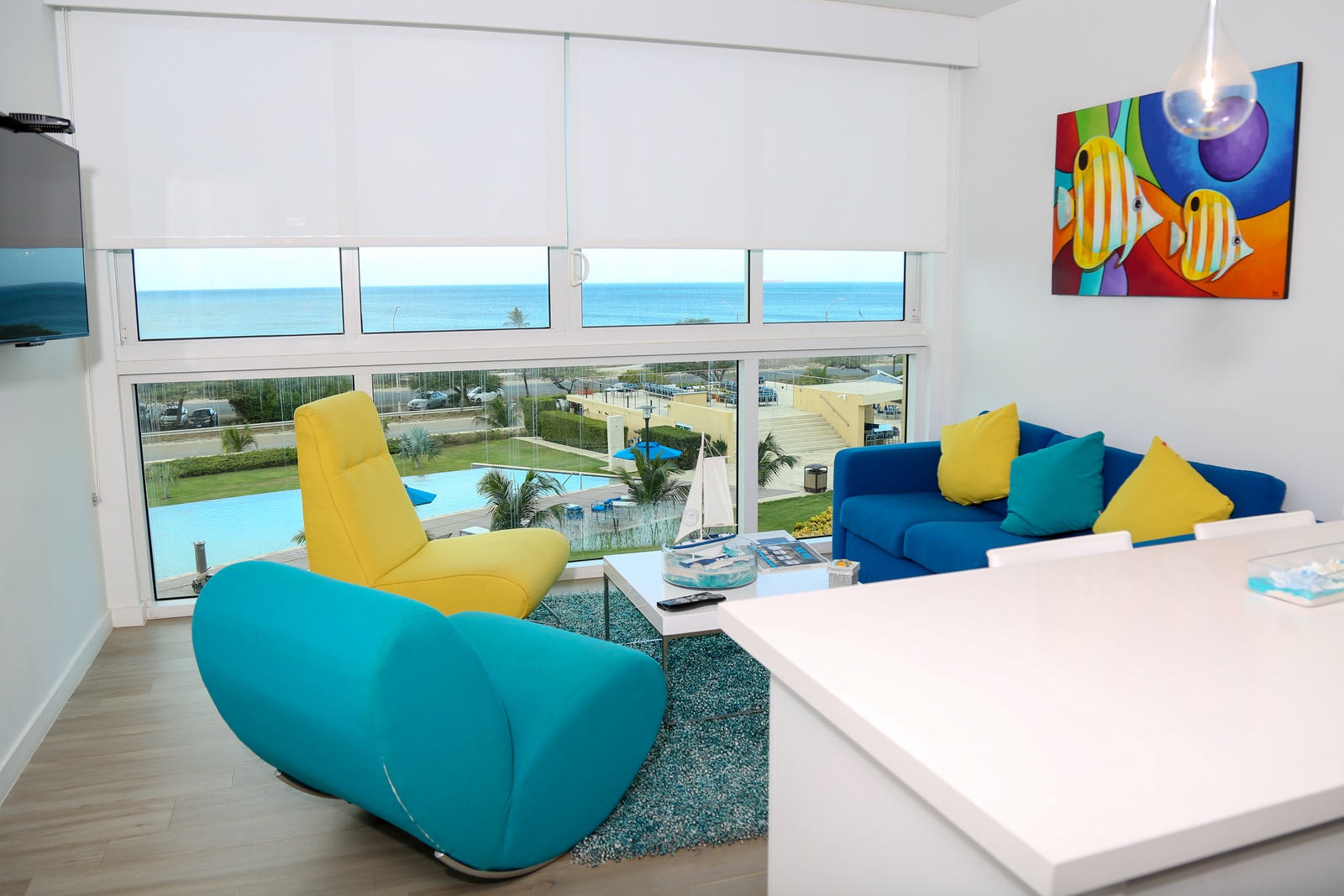 Apartment located in Blue Residences, a condominium complex located along Eagle Beach in Aruba, one of the most beautiful and friendly islands in the Caribbean, also known as One Happy Island. Blue Residences offers you a Fitness Center, fully renovated swimming pools, concierge services, spa. It is condominium complex with facilities like a hotel, the perfect vacation rental for your family getaway to relax and unwind.