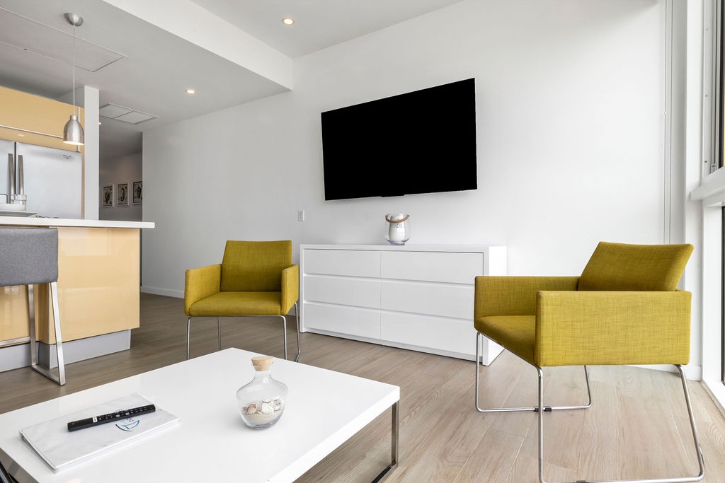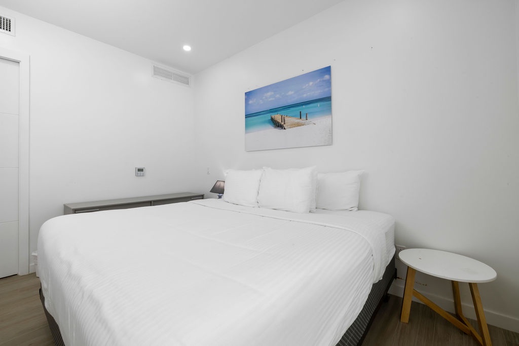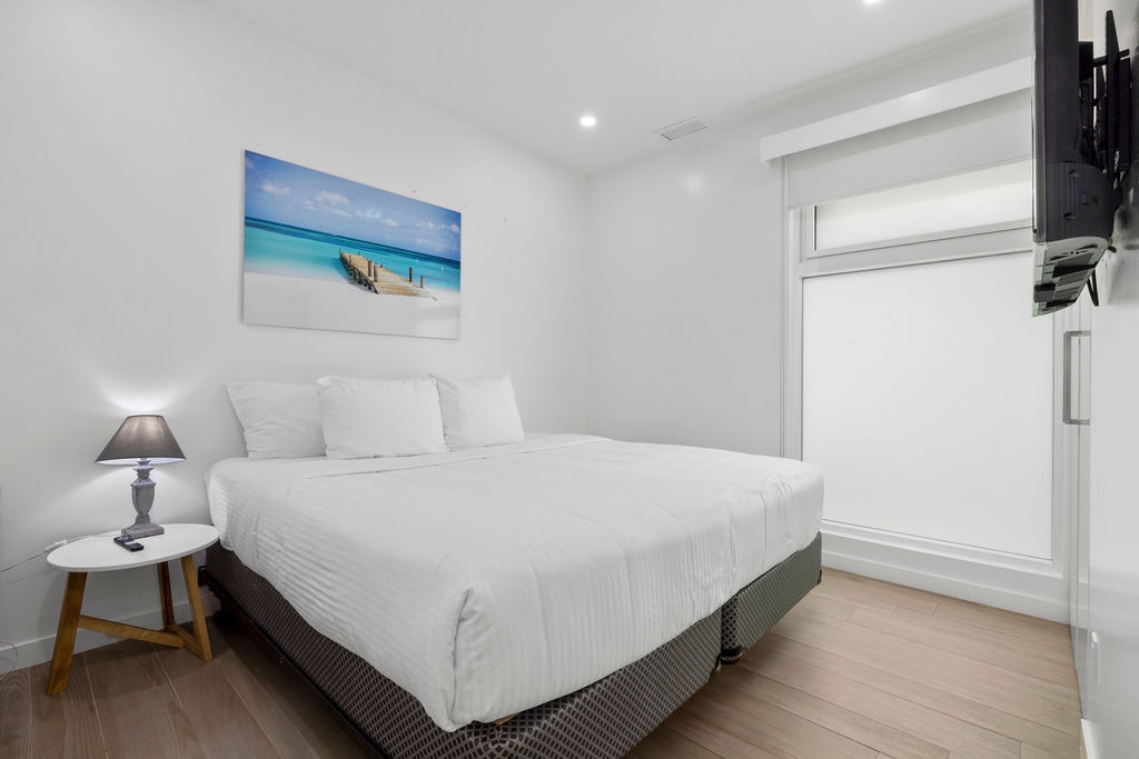 A full air-conditioned one bedroom set up with a Queen Bed and private bathroom. Fully equipped kitchen. Living/Dining room with sofa sleeper. TV’s and WiFi, Washer and Dryer, Iron and Ironing Board. Smart lock with a unique easy access code valid during your stay. Maximum 4 persons.