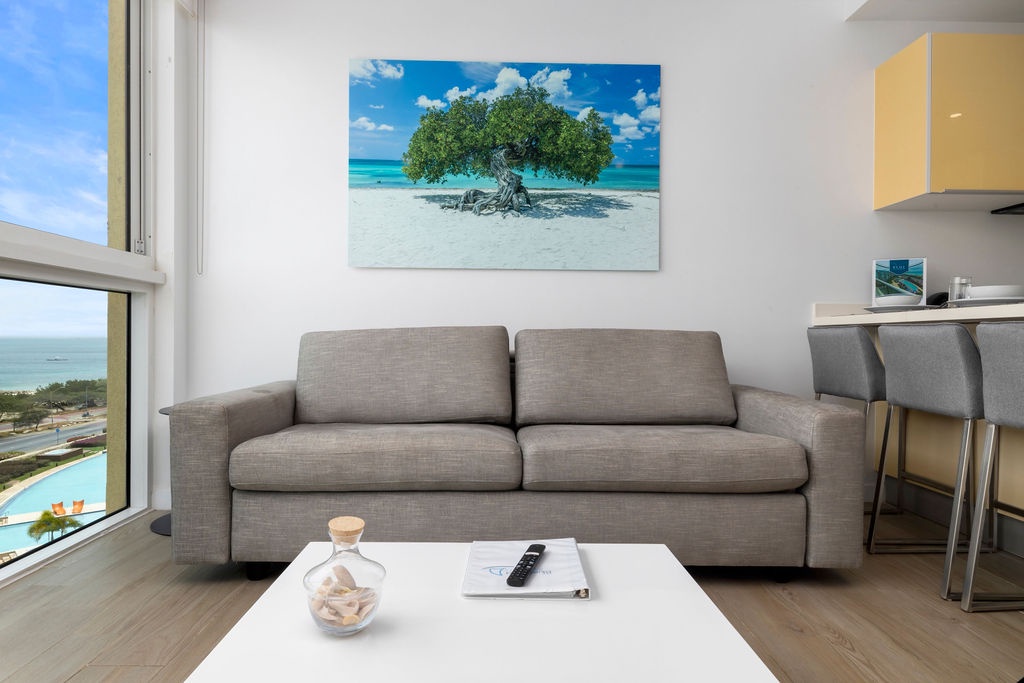 Apartment located in Blue Residences, a condominium complex located along Eagle Beach in Aruba, one of the most beautiful and friendly islands in the Caribbean, also known as One Happy Island. Blue Residences offers you a Fitness Center, swimming pools, concierge services. It is condominium complex with facilities like a hotel, the perfect vacation rental for your family getaway to relax and unwind.