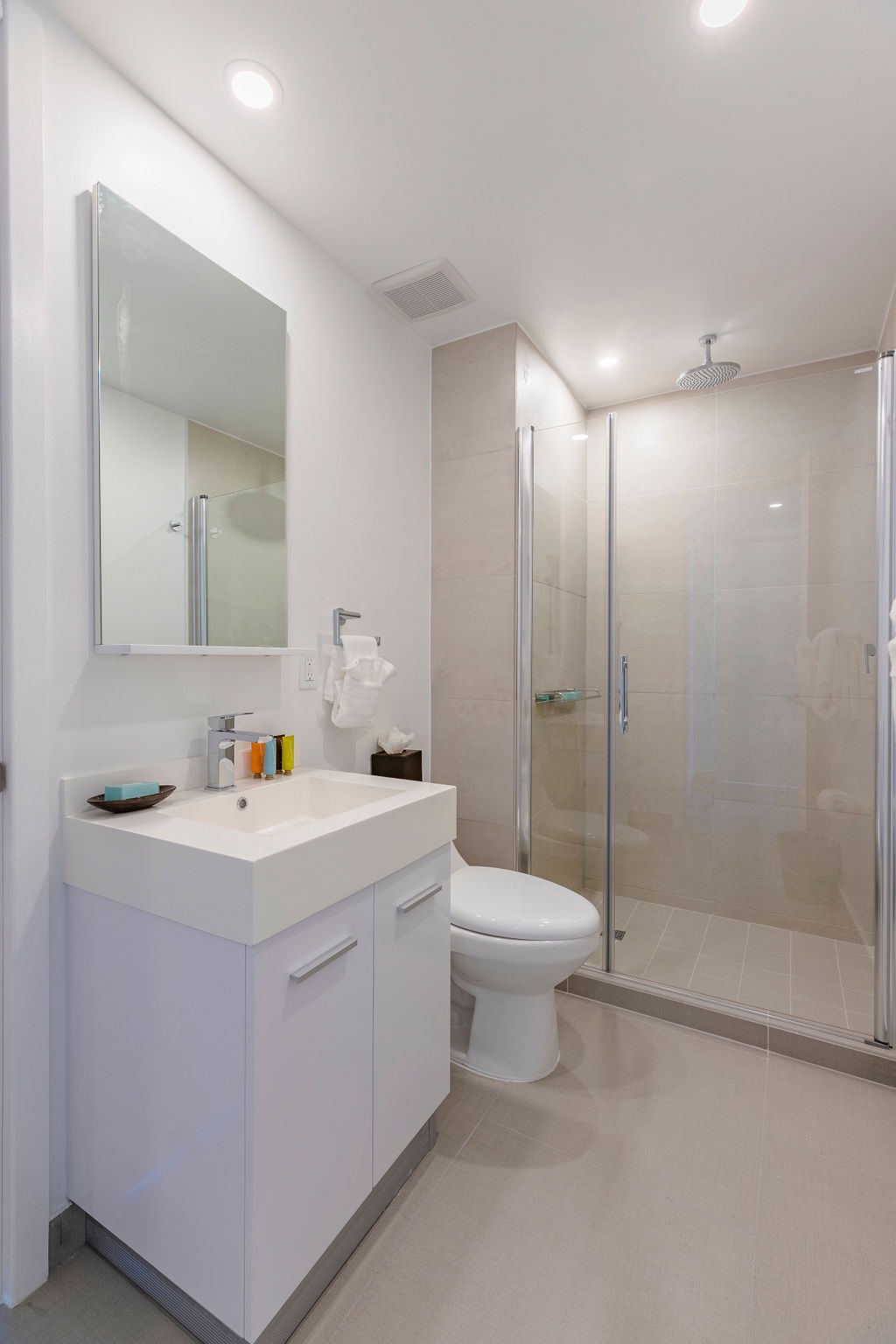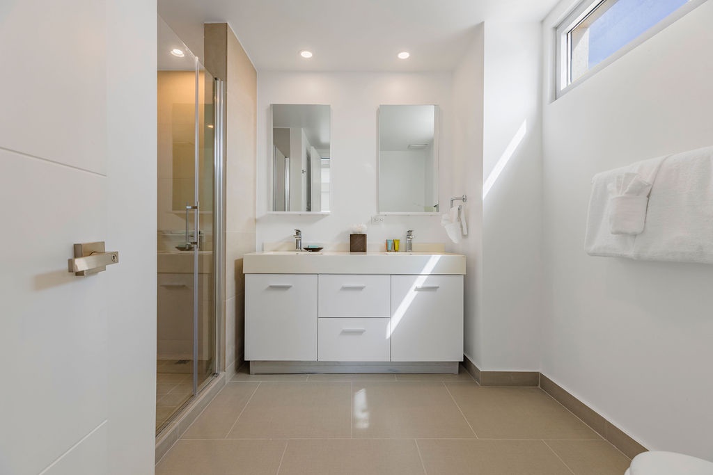 • Each bathroom has their own white towels and blue beach towels in the vanity.