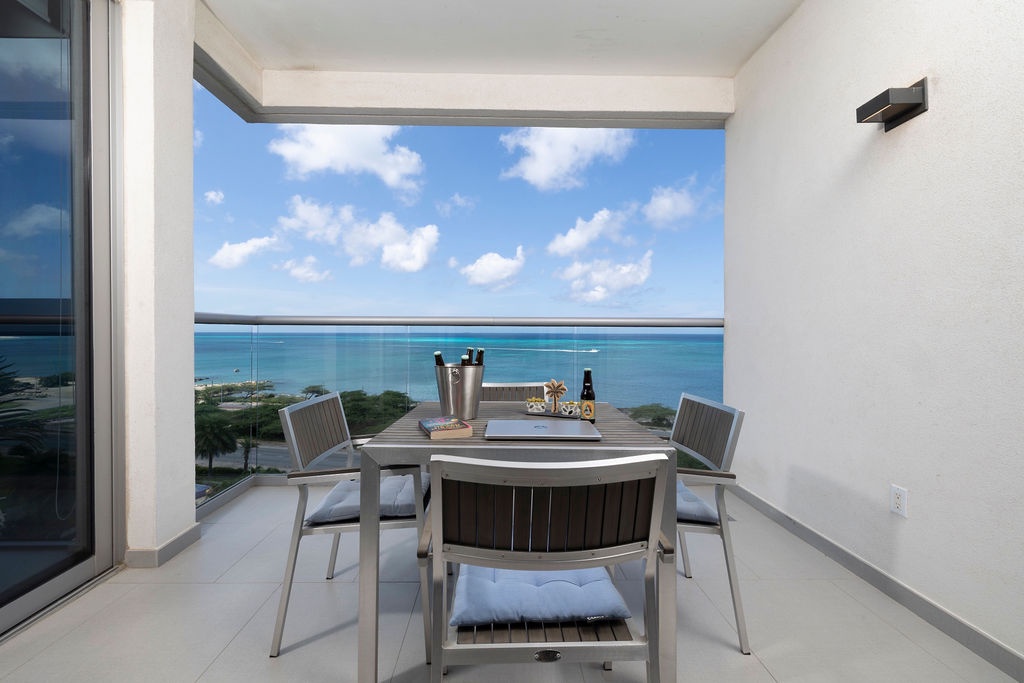 Experience tranquility in this air-conditioned suite, where the master bedroom boasts a king bed, and the guest's bedroom offers two full beds. Two bathrooms with showers, a fully equipped kitchen, and a stylish dining/living area with a sofa bed that unfolds into a full-size bed. Step onto the balcony to savor the breathtaking view of the Caribbean Sea that awaits you. Uninterrupted connectivity and entertainment are assured with free Wi-Fi and flat-screen TVs in all rooms.