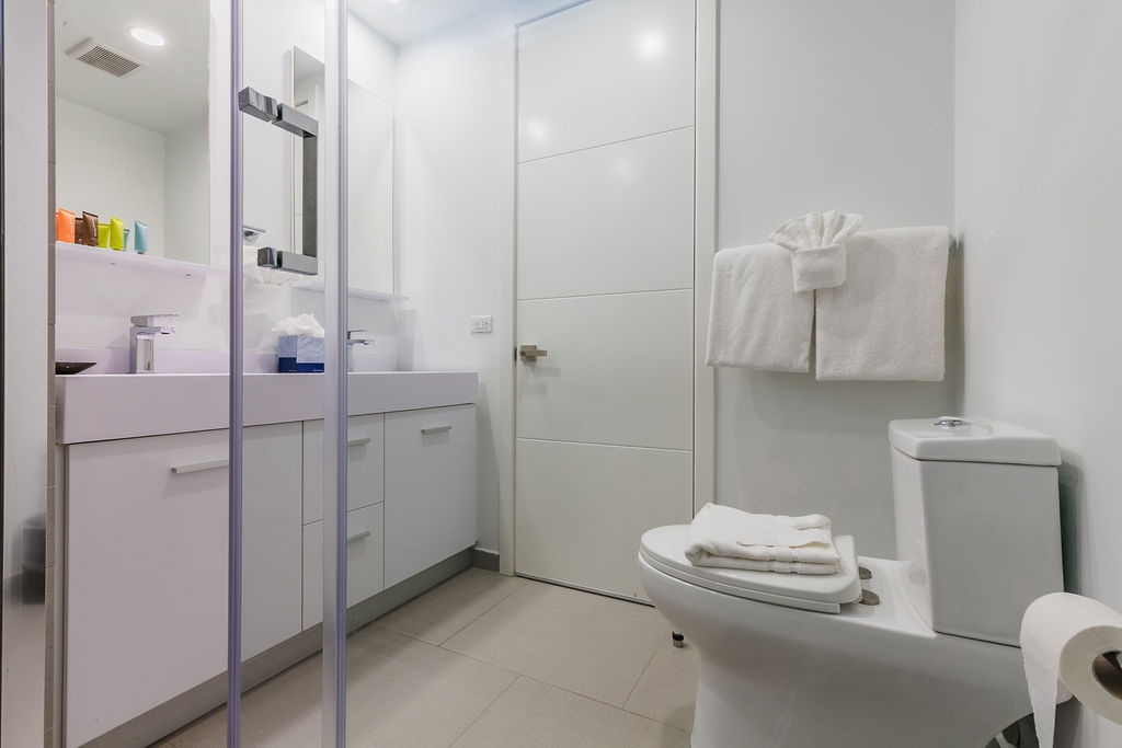 • Each bathroom has their own white towels and blue beach towels in the vanity.