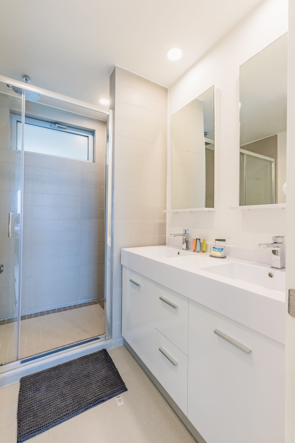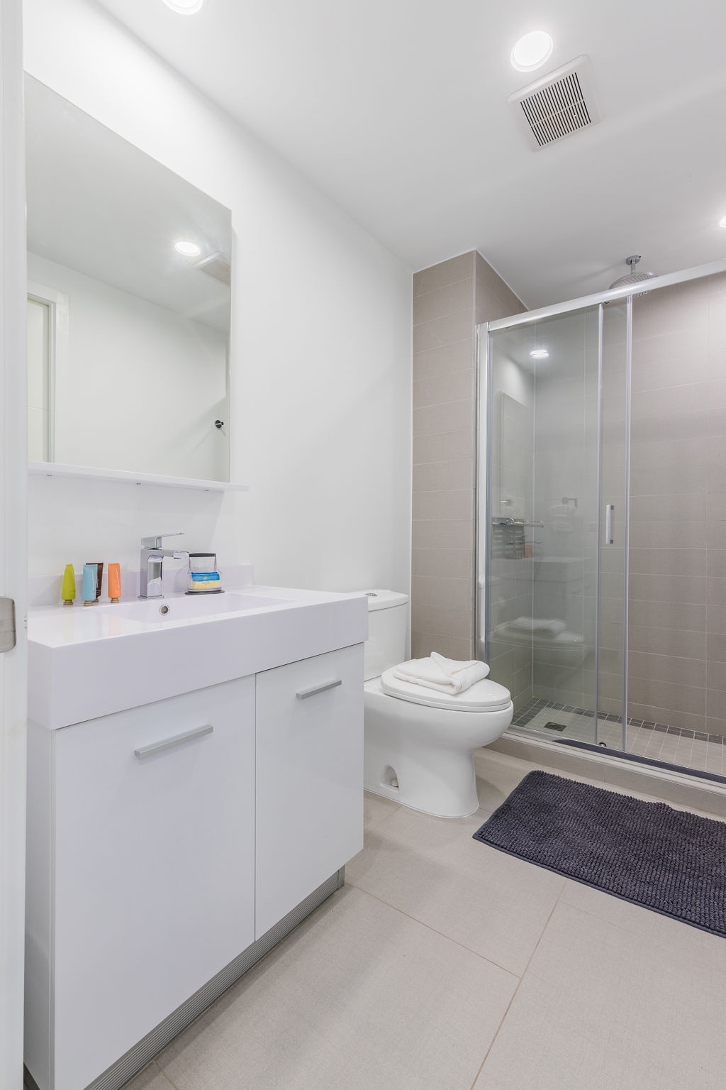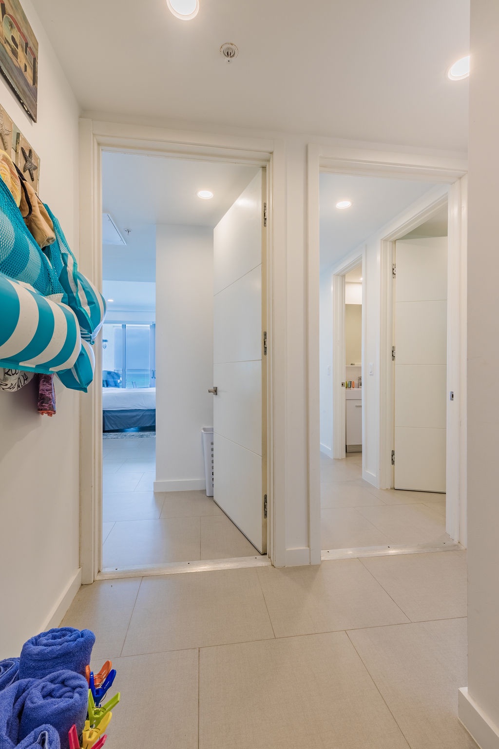 • Each bathroom has their own white towels and blue beach towels in the vanity.