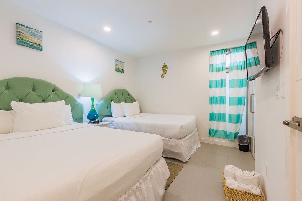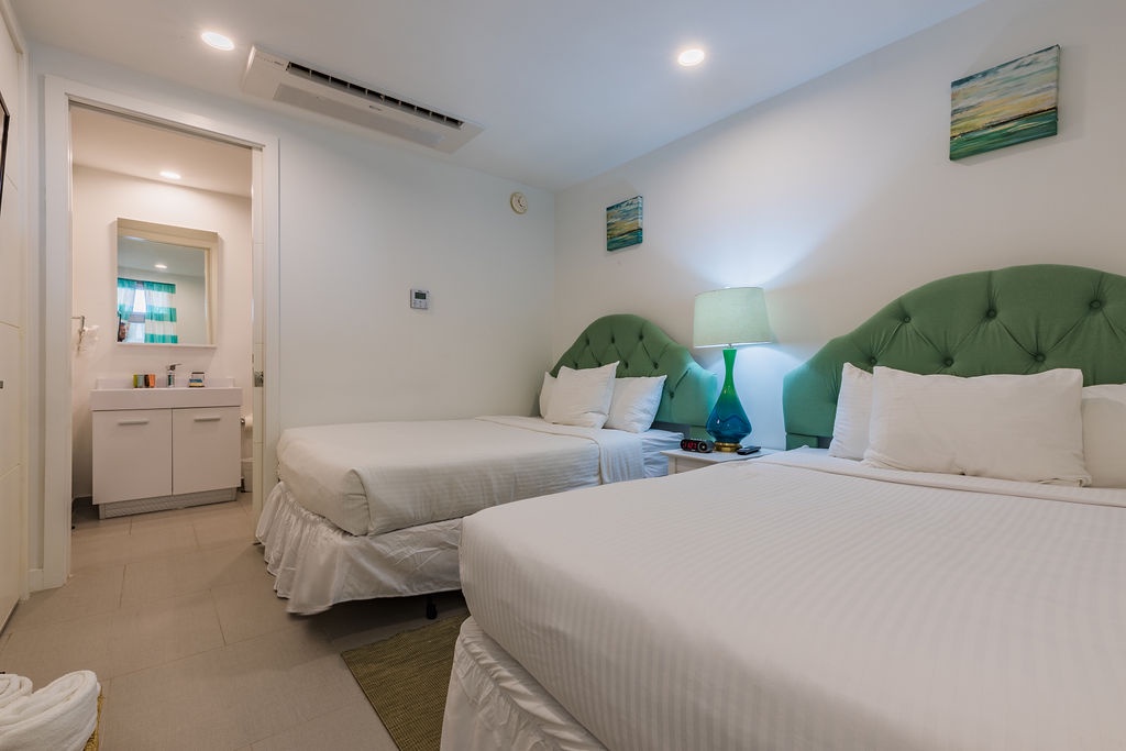 This apartment has two bedrooms with a spectacular ocean view. Featuring one king bed and two full beds, two bathrooms with shower and hairdryer, a fully equipped kitchen, dining and living area with amazing view and a sofa bed which unfolds to a full-size bed, and washer and dryer. One step into the balcony through sliding doors as you gaze out at the ocean. Free Wi-Fi and TV’s in all rooms.