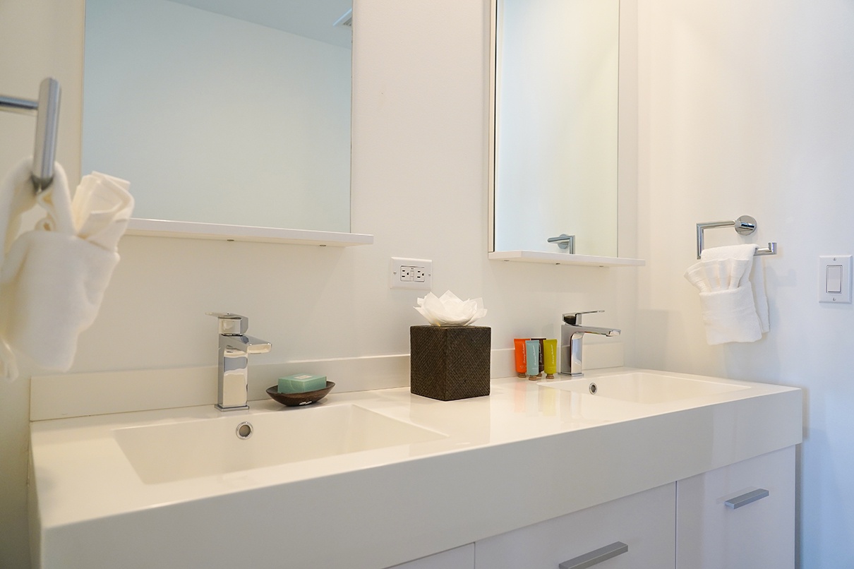 • Each bathroom has their own white towels and blue beach towels in the vanity.