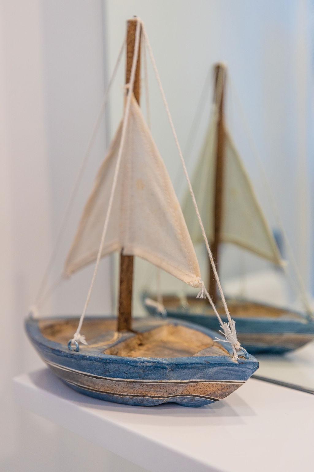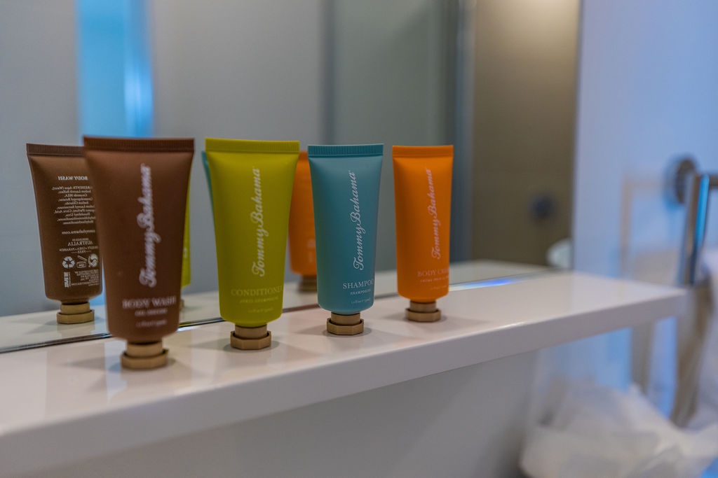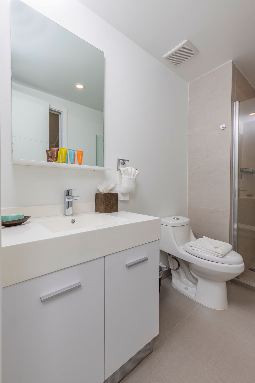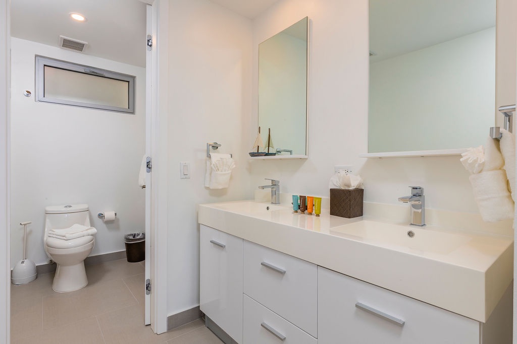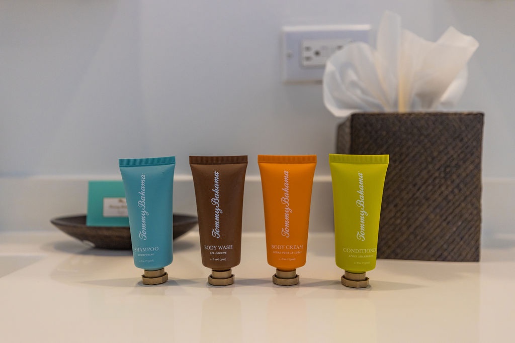 • Each bathroom has their own white towels and blue beach towels in the vanity.
