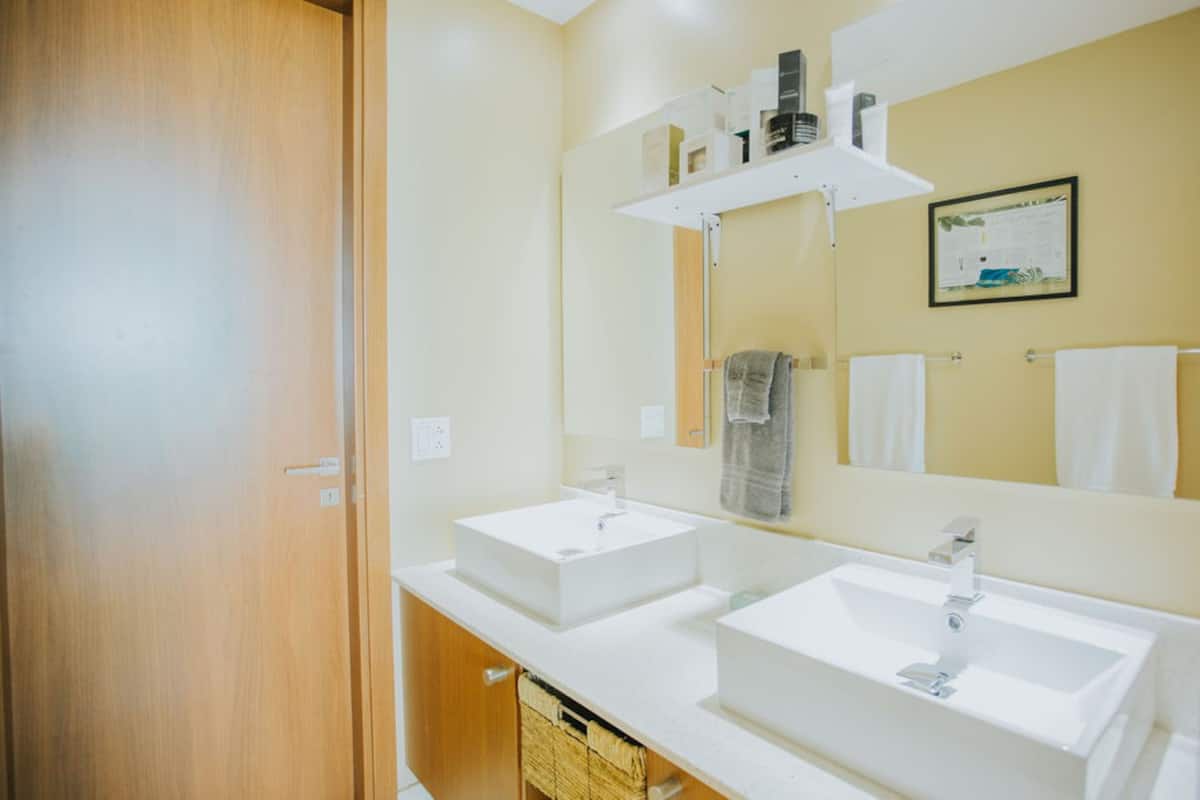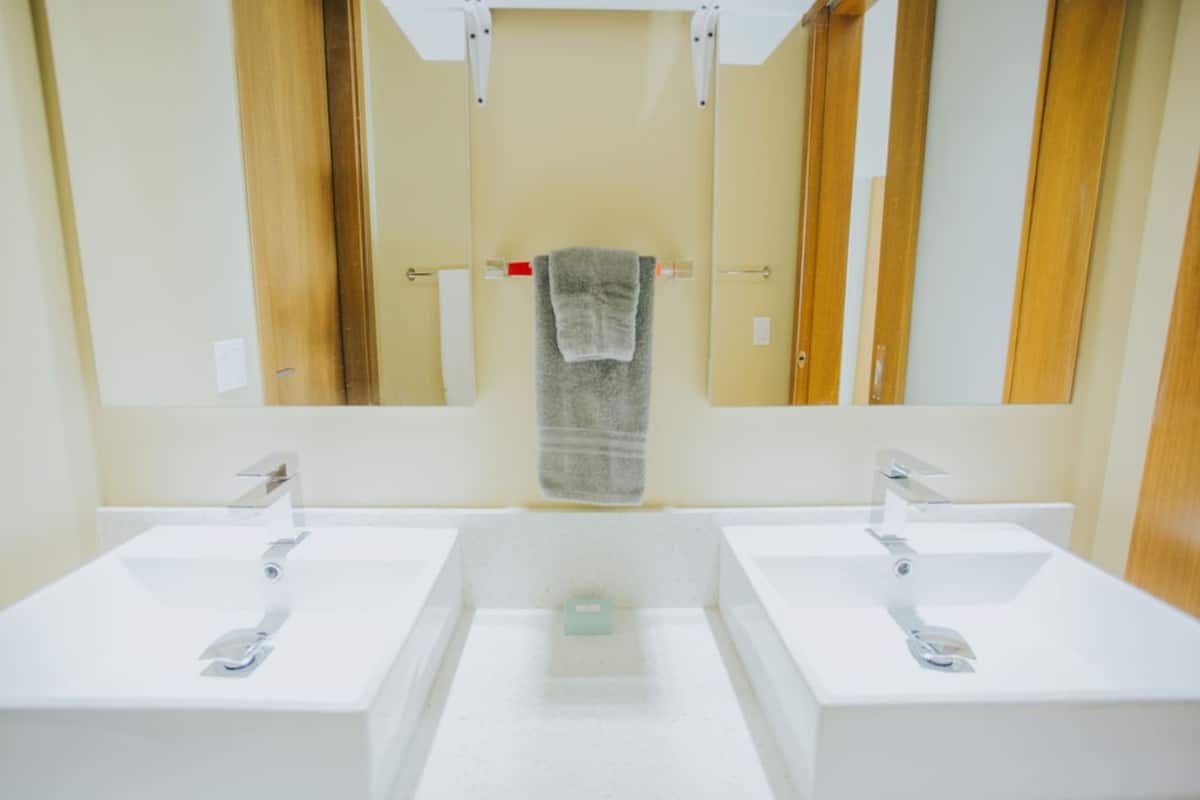 • Each bathroom has their own white towels and blue beach towels in the vanity.