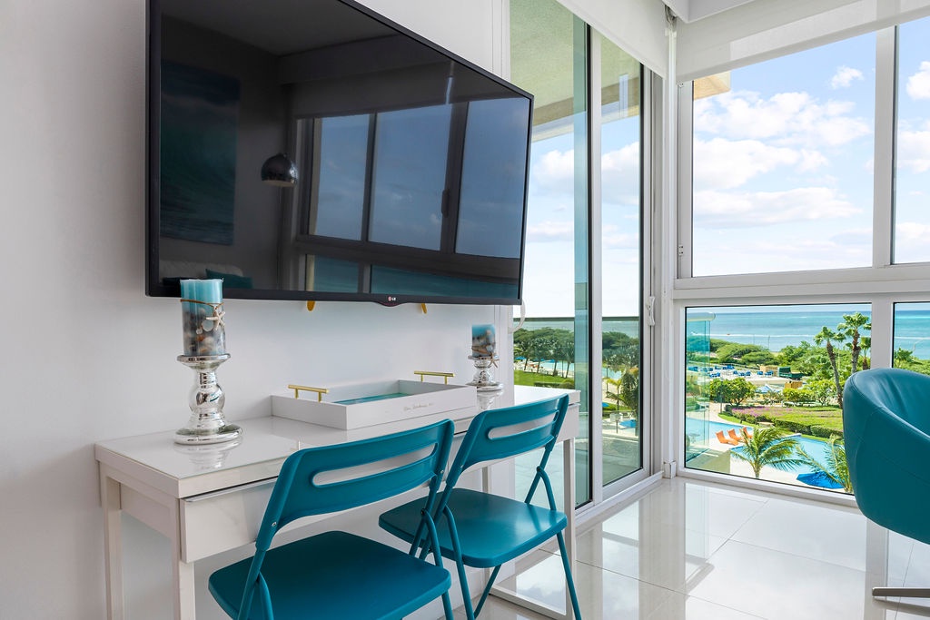 The apartment has a wide-open view from the kitchen and living room and a nice cozy space to enjoy with family and friends. The master bedroom has a king-size bed and the second bedroom one full size bed and one bunk bed (full/twin size bed), each with its own full bathroom. Fully equipped kitchen with everything you need to prep your meals and more. You will also be able to enjoy the most beautiful sunsets from the comfort of your private balcony.