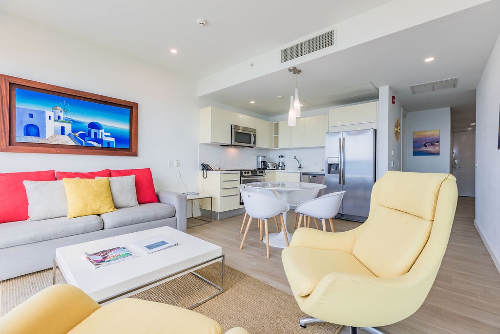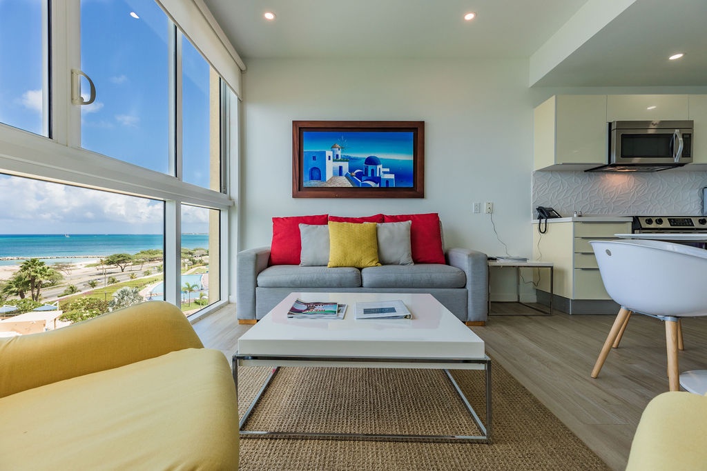 Apartment located in Blue Residences, a condominium complex located along Eagle Beach in Aruba, one of the most beautiful and friendly islands in the Caribbean, also known as One Happy Island. Blue Residences offers you a Fitness Center, swimming pools, concierge services. It is condominium complex with facilities like a hotel, the perfect vacation rental for your family getaway to relax and unwind.