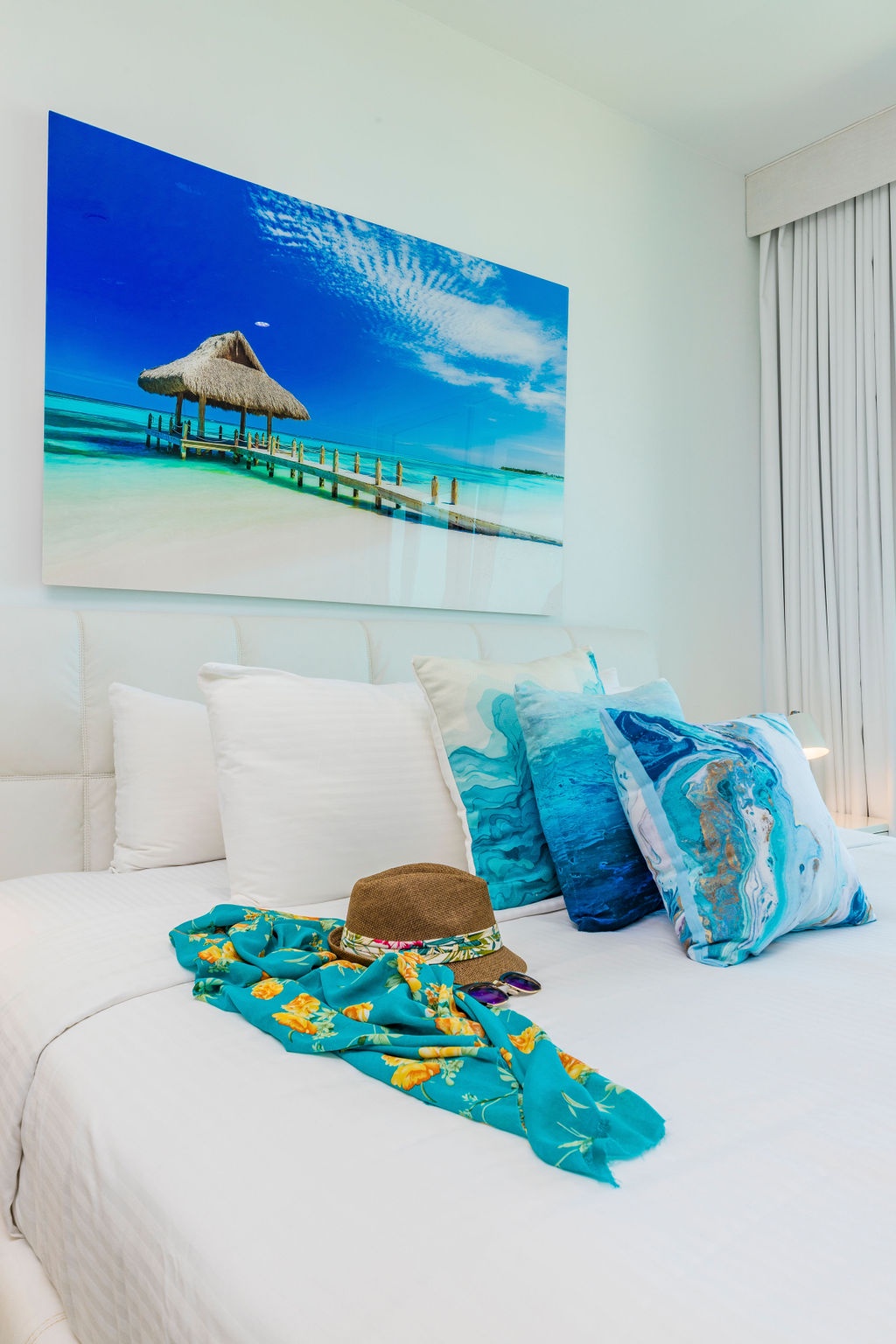 • Each bathroom has their own white towels and blue beach towels in the vanity.