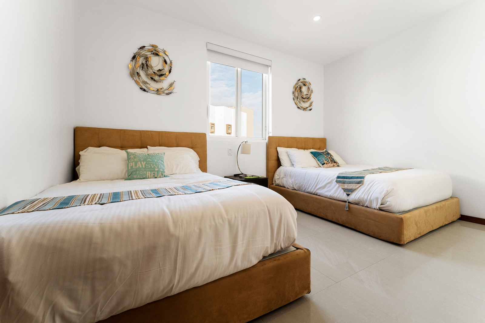• Each bathroom has its own white bath towels and blue beach towels in the vanity.