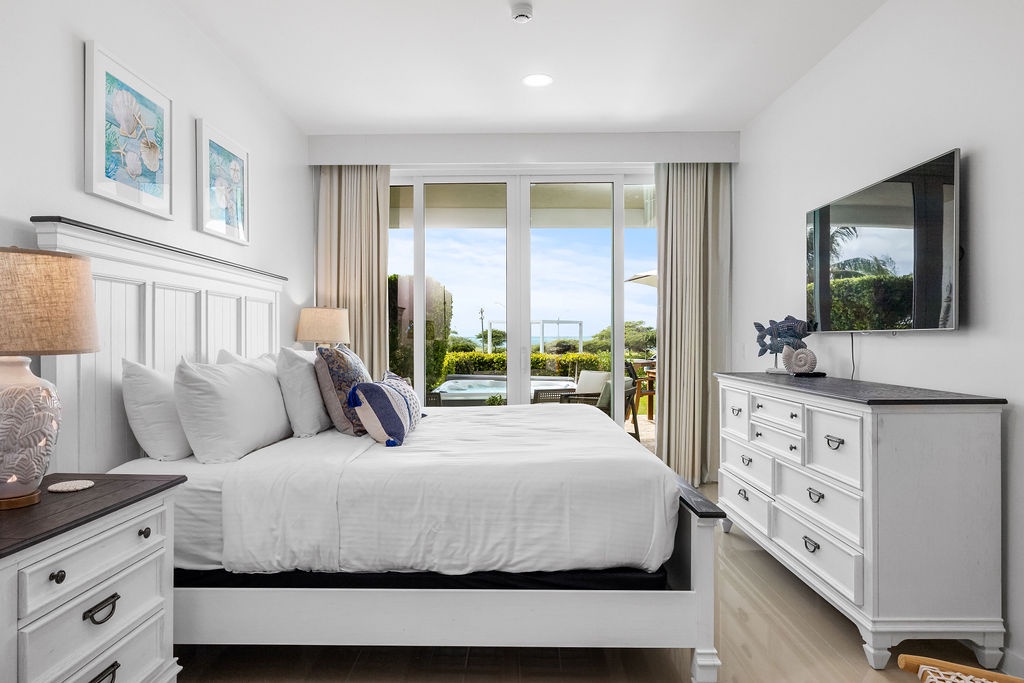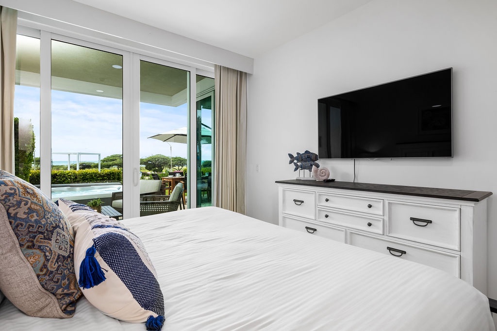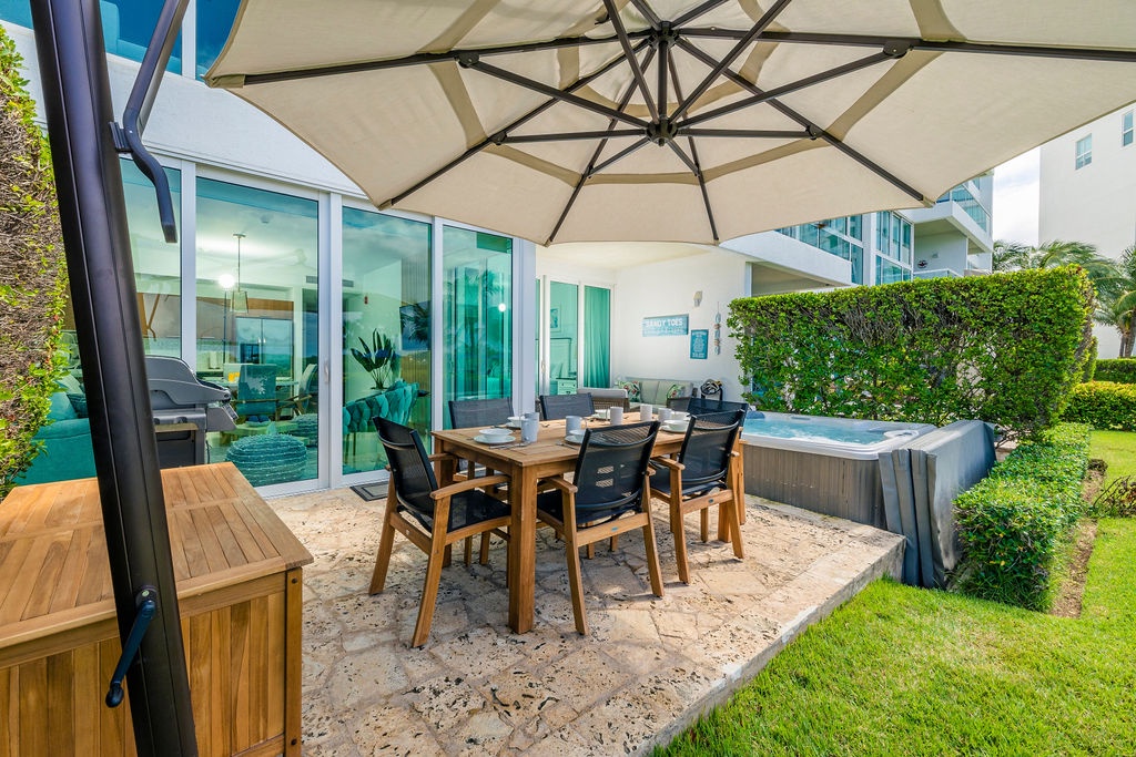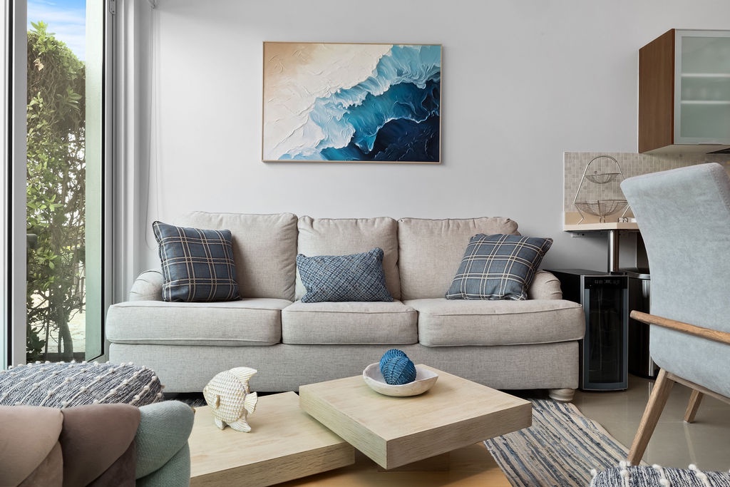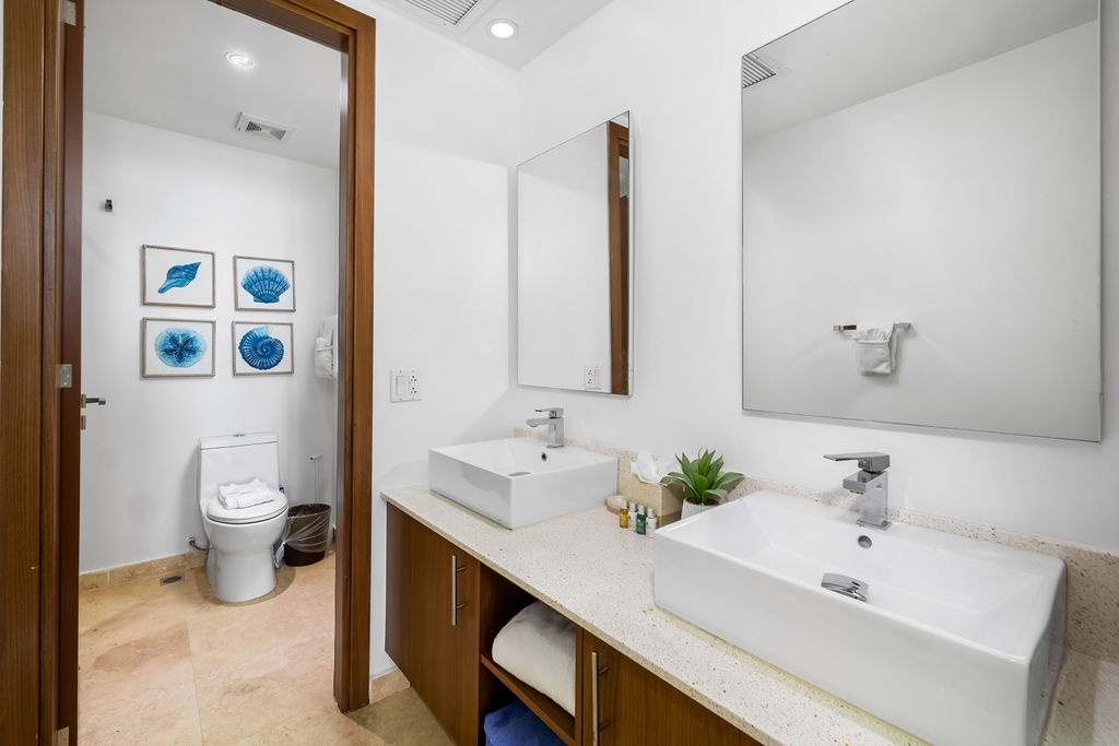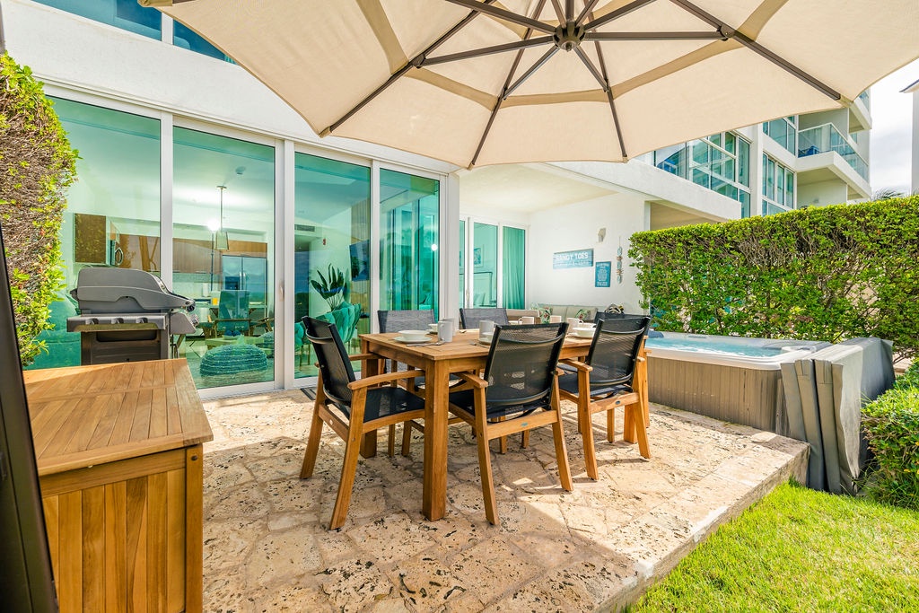 This full air- conditioned two-bedroom suite has a spectacular ocean view. Featuring Master bedroom with a king-size bed and a private bathroom with shower, guest bedroom with two full-size beds and a full bathroom, fully equipped kitchen, dining and living area with sofa bed which unfolds to a full-size bed, washer and dryer. Comfortable private patio with access to the pool area and with its own private Jacuzzi. Free Wi-Fi and TV’s in all rooms.
