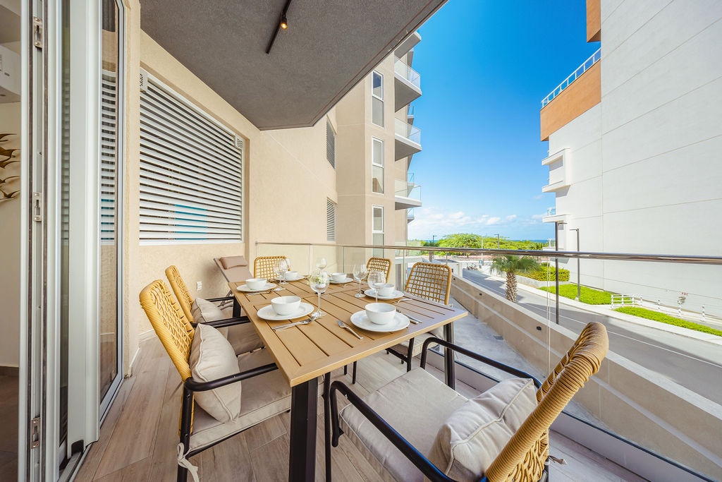 Hermoso departamento, muy bien equipado, el mobiliario de muy buen gusto, las habitaciones muy espaciosas, lujo y comodidad. Todo el edificio nuevo, limpio, impecable. Linda piscina, terraza con yacusi y barbacoa, espectacular. Muy bueno el servicio de limpieza. Excelentes vistas. Cerca de todo. La playa del frente es tranquila, lastima que el mar en esa zona no es lindo para bañarse.
