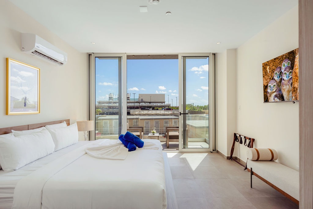 Guests can enjoy resort style amenities, including a swimming pool, fitness room, and a rooftop hot tub where you can relax while taking in stunning views of the Caribbean Sea. Free parking is available on site, and the property is just a short walk from Eagle Beach, one of Aruba’s most beautiful beaches.