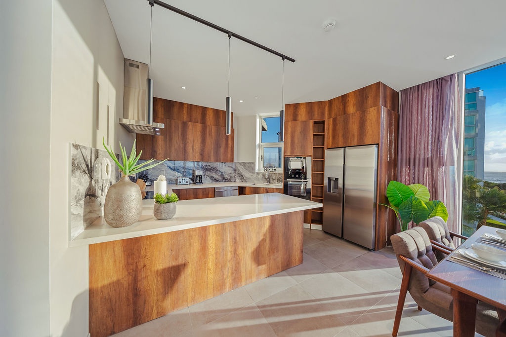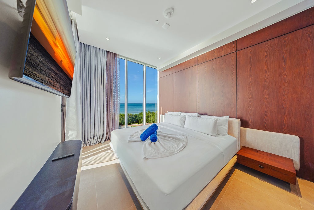 Large condominium with great ocean views. Across the street from a small beach, the nicer beaches are a 10 minute walk away.