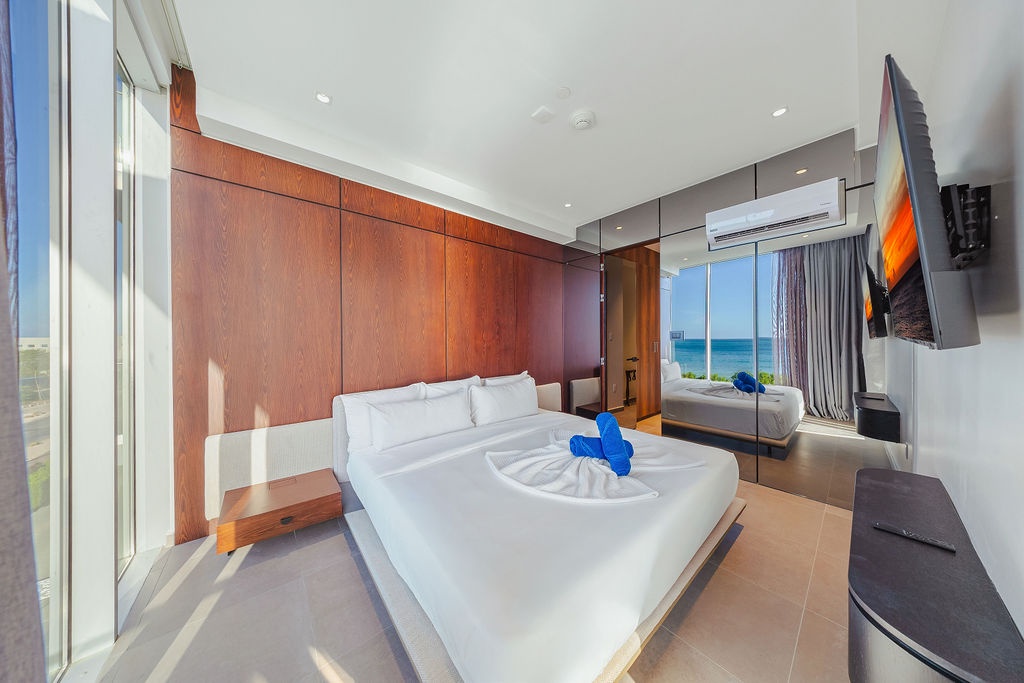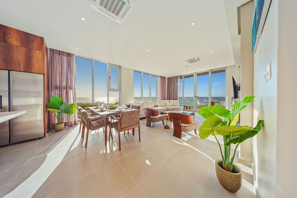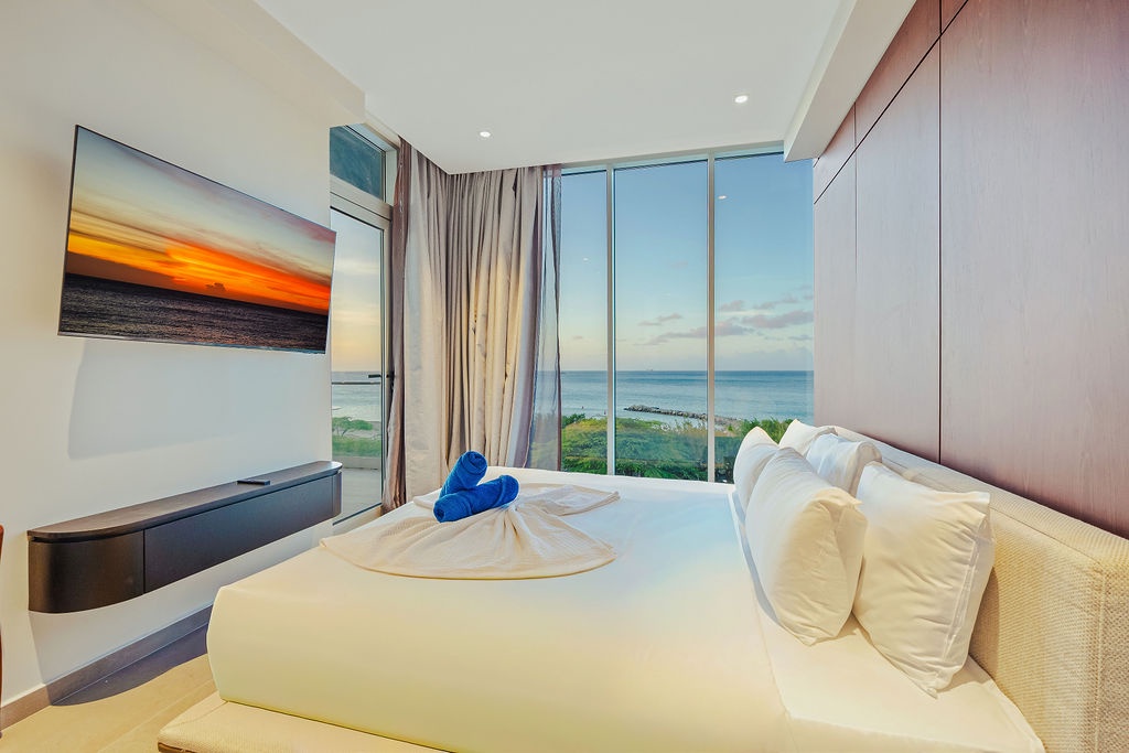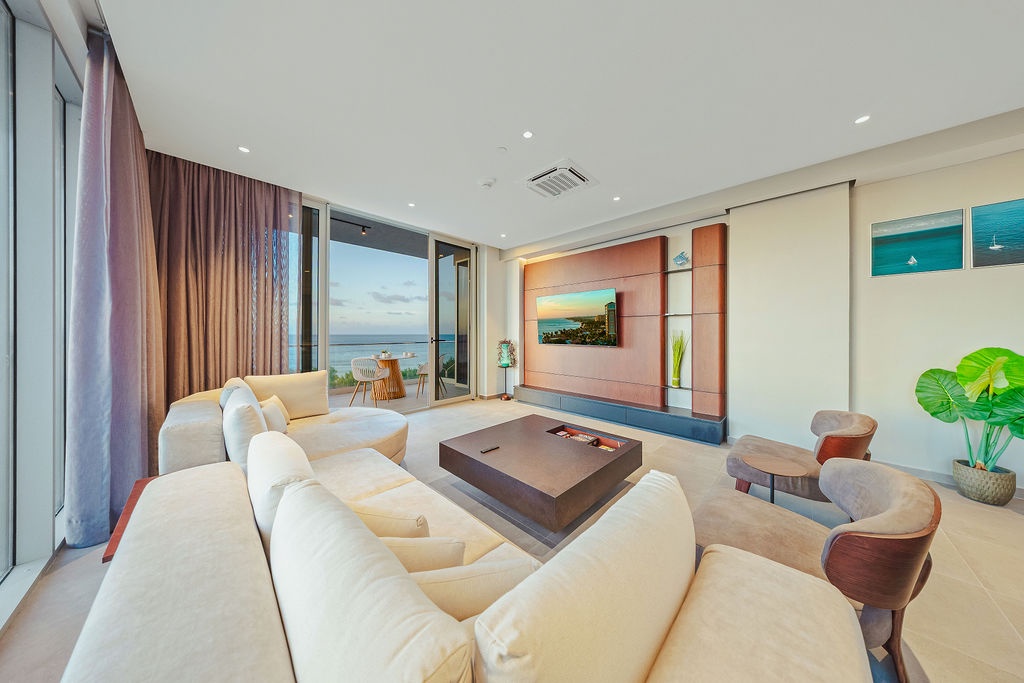 Inside, you will find a fully equipped kitchen with modern appliances, cooking essentials, and a coffee maker to start your mornings right. The cozy living area invites you to relax on a comfortable sofa while enjoying ocean views from your private balcony. It is the ideal spot for morning coffee or evening sunsets.