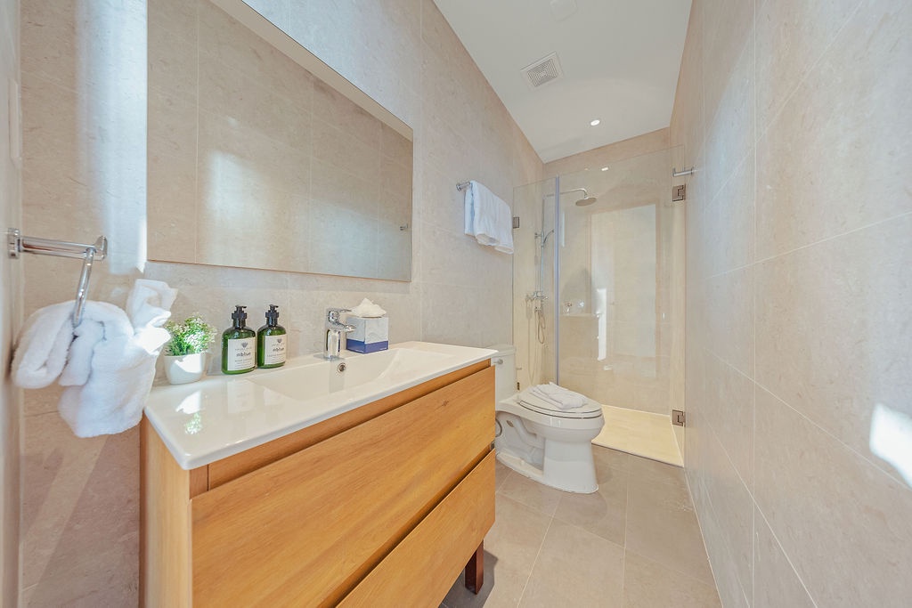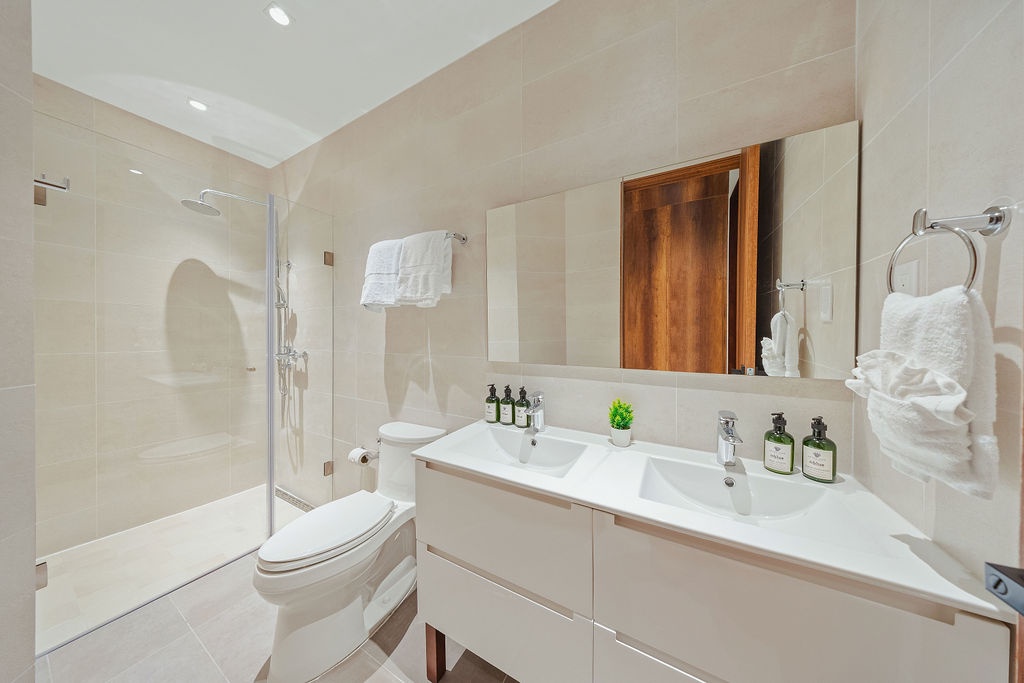 The suite features two spacious bedrooms, each with a king size bed, ample closet space, and its own en suite bathroom, offering privacy and comfort for everyone. With three full bathrooms in total, the home is well suited for families or groups traveling together.