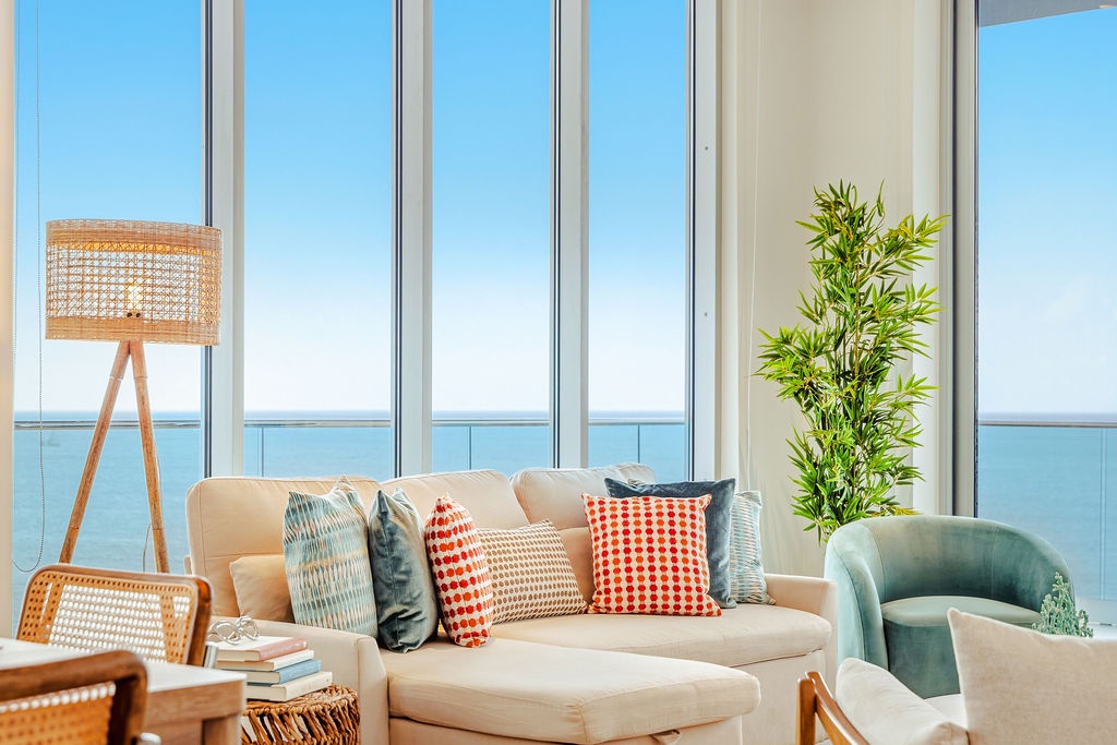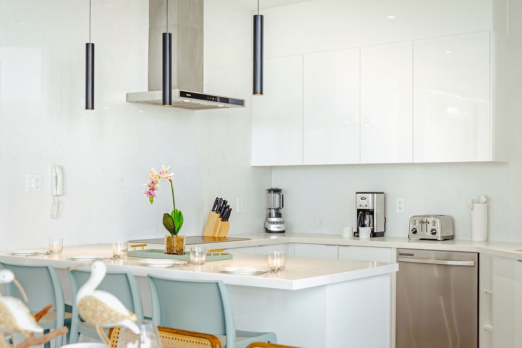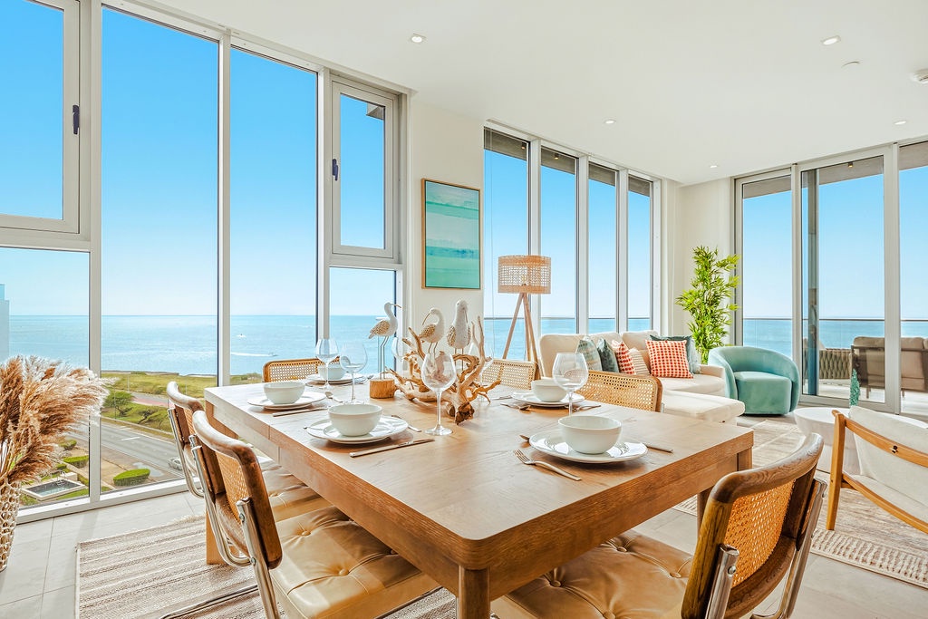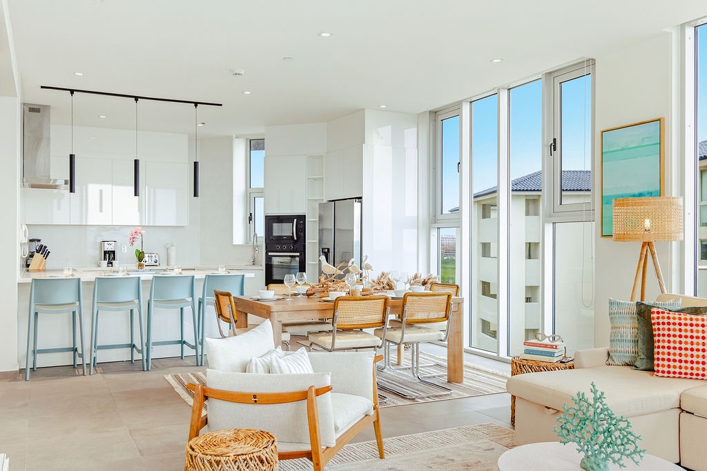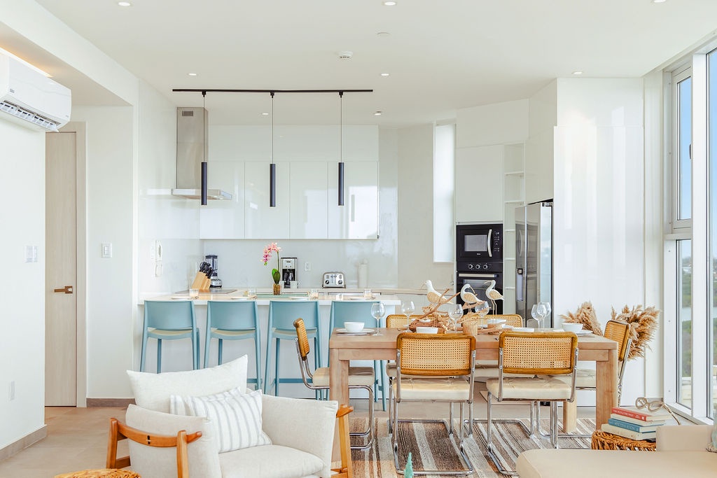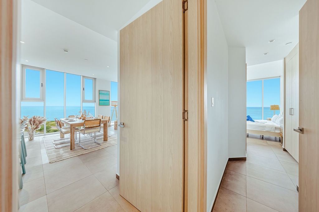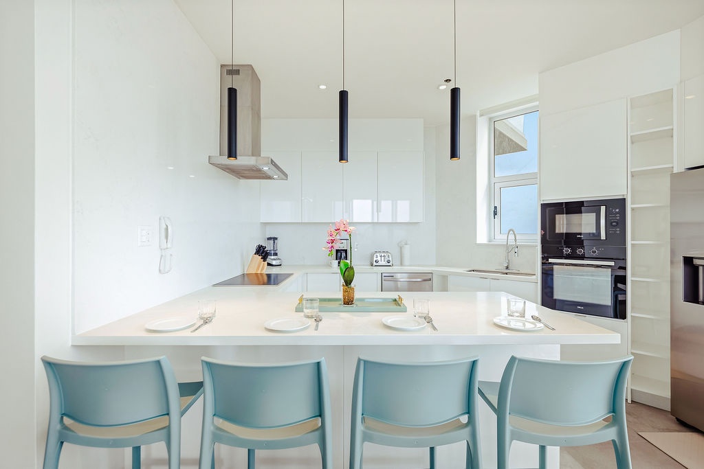 The master bedroom features a plush king-sized bed, ensuring a restful night's sleep, while the second bedroom comfortably accommodates four guests with queen-sized beds bunk beds. Each bedroom is designed with your comfort in mind, offering ample storage space and en-suite bathrooms for your convenience. The three full bathrooms are elegantly appointed, providing a spa-like retreat after a day of exploration.