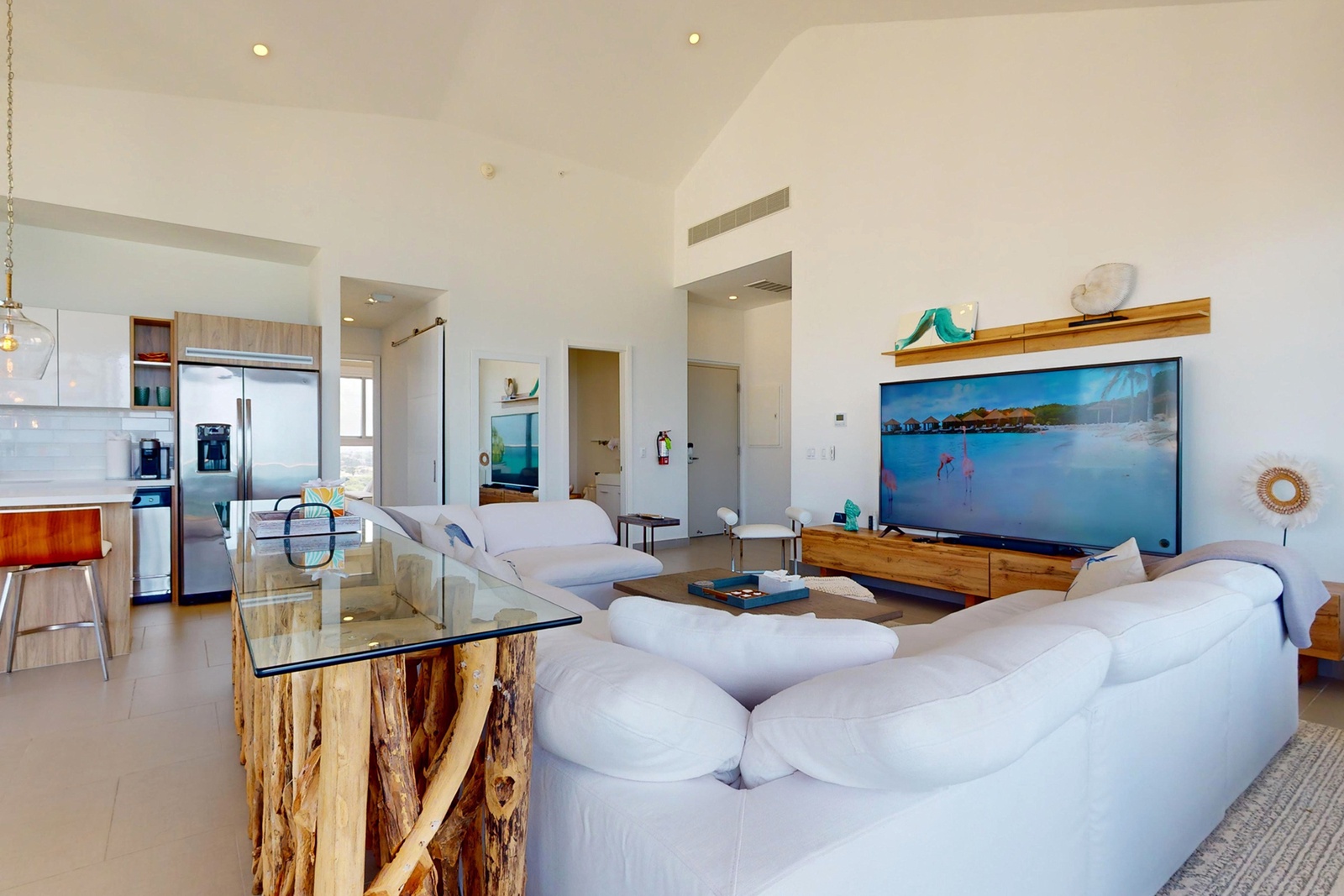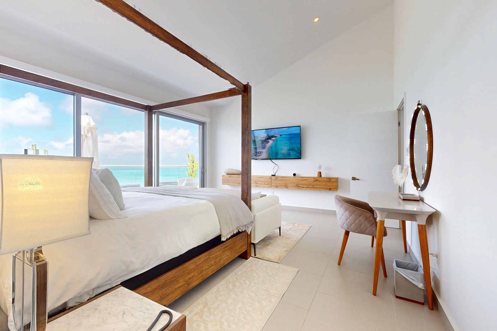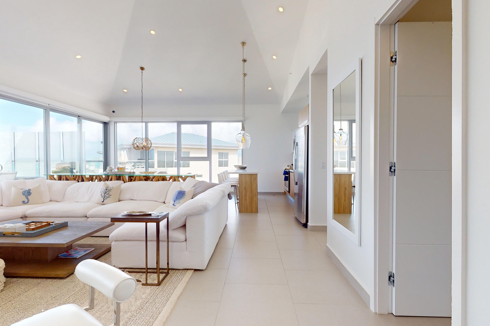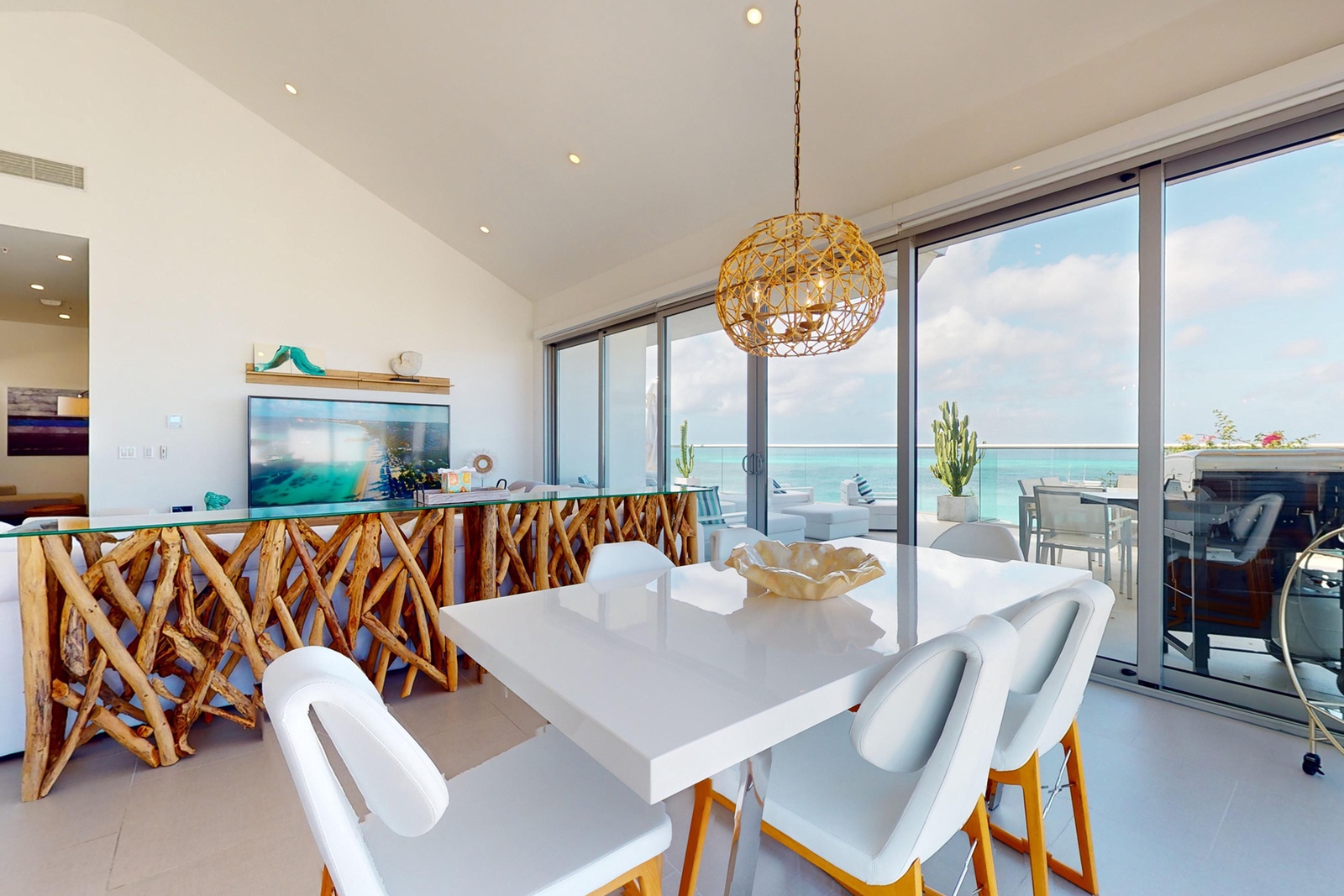Enjoy the open-concept living and dining area, a fully equipped modern kitchen, and a separate TV room for extra relaxation space. Step out onto the expansive private terrace, where you’ll find a BBQ grill, hot tub, and panoramic views of the turquoise Caribbean Sea—a perfect setting for unforgettable sunsets.