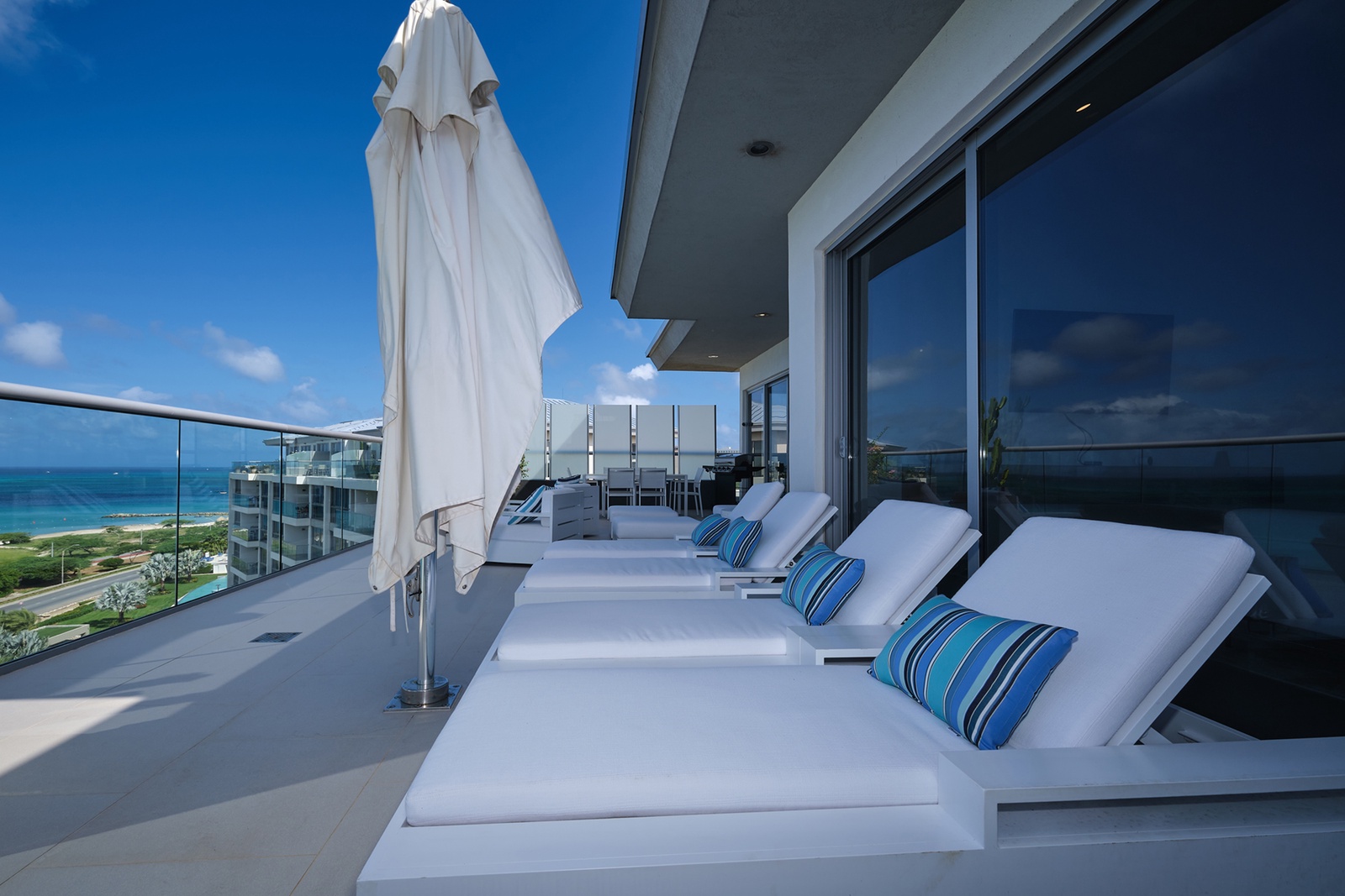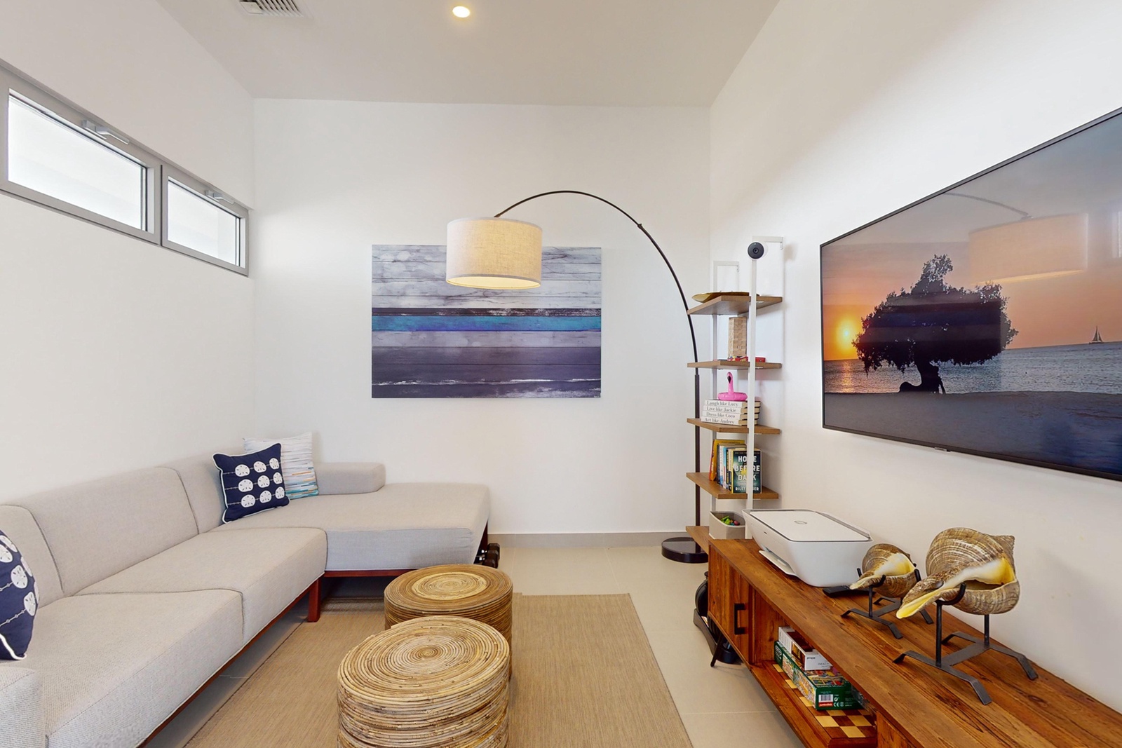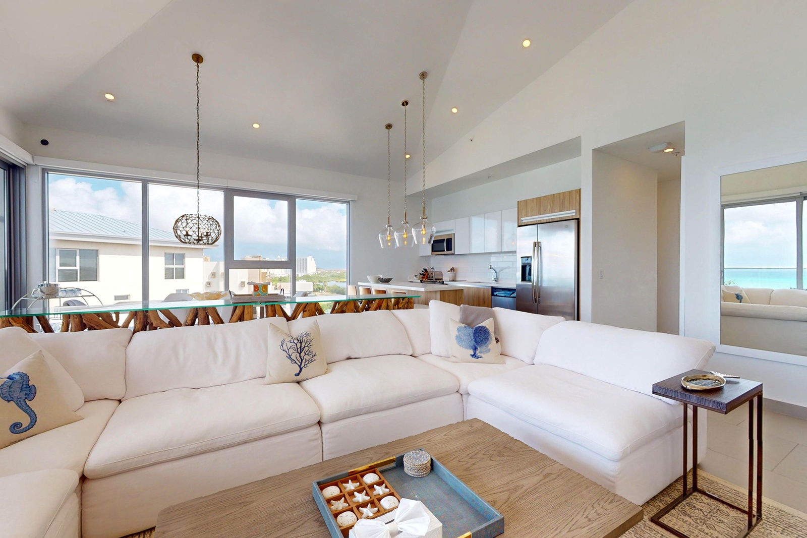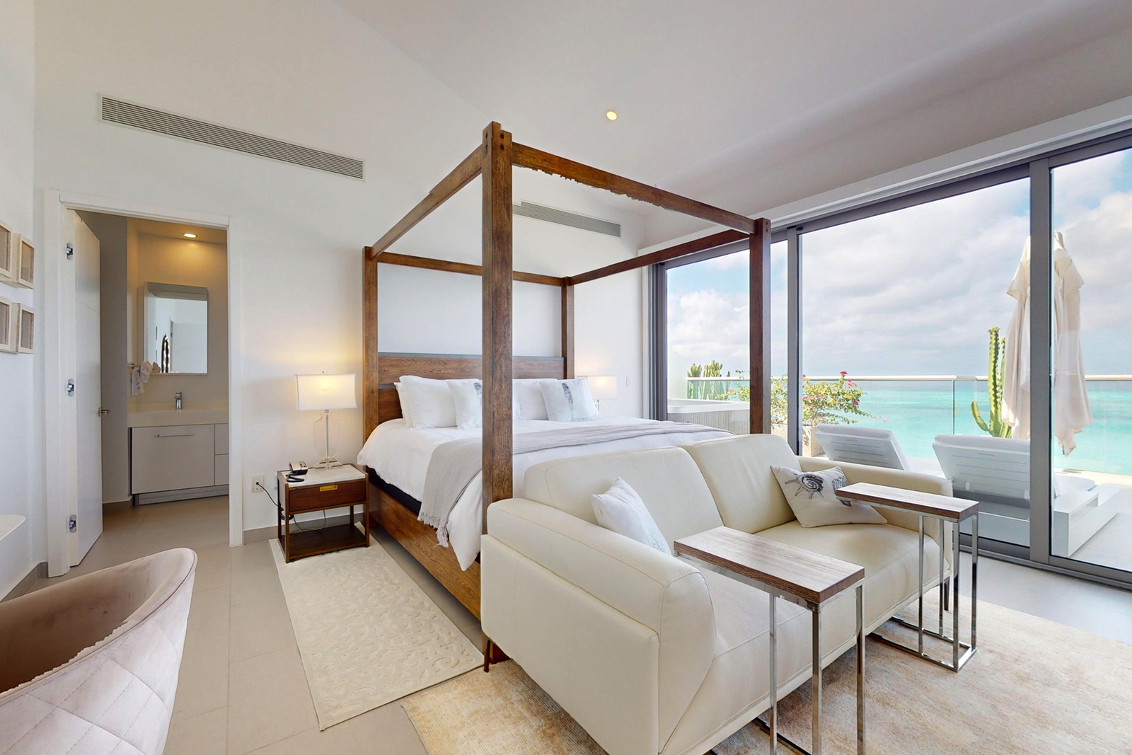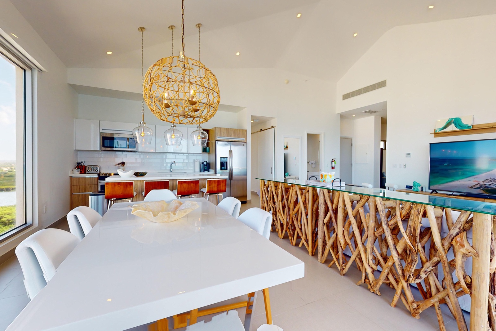 Enjoy the open-concept living and dining area, a fully equipped modern kitchen, and a separate TV room for extra relaxation space. Step out onto the expansive private terrace, where you’ll find a BBQ grill, hot tub, and panoramic views of the turquoise Caribbean Sea—a perfect setting for unforgettable sunsets.