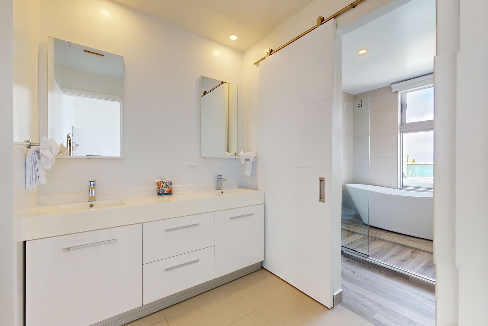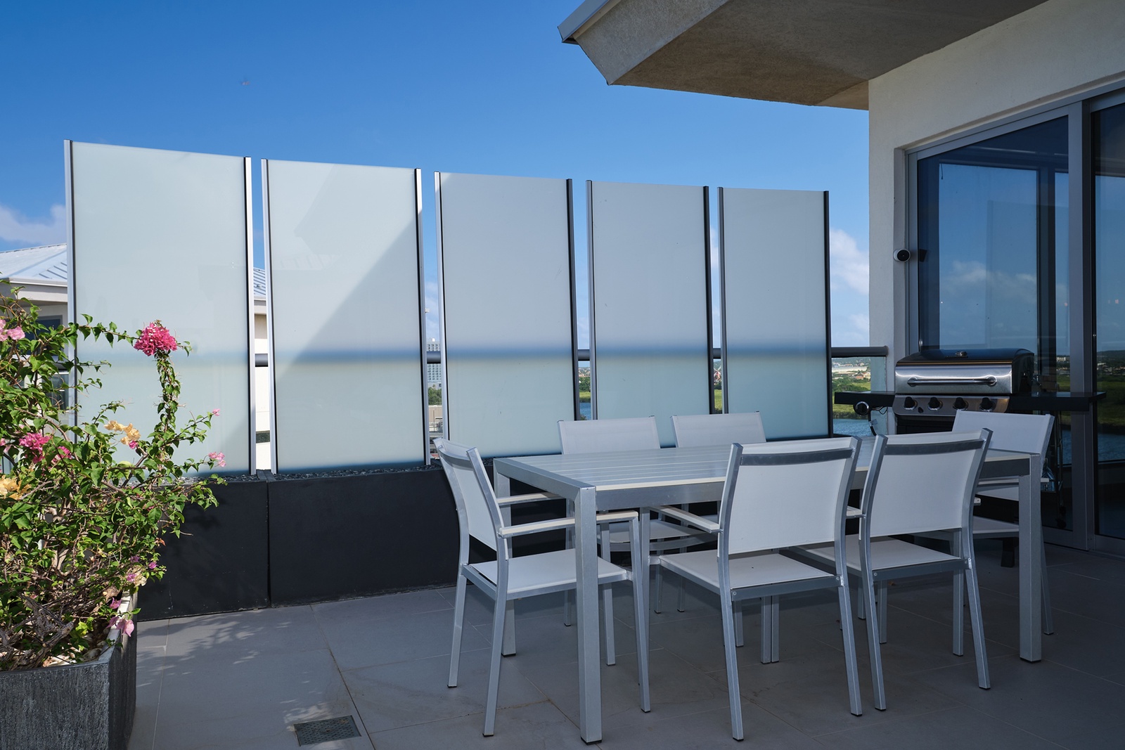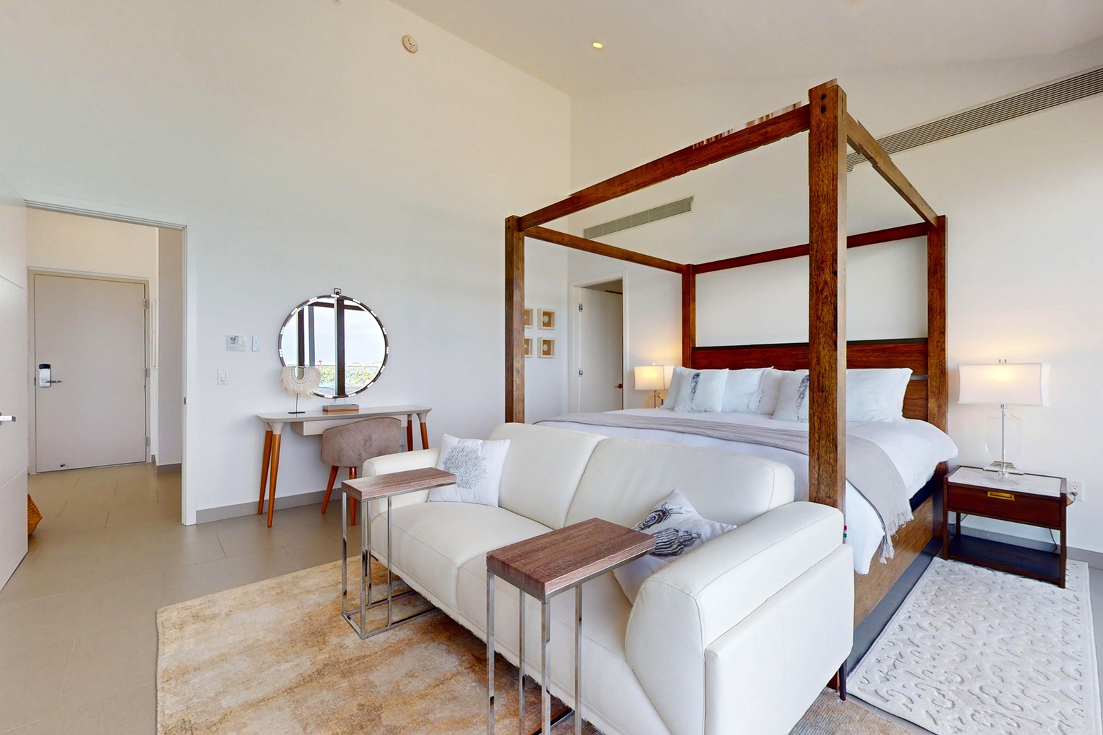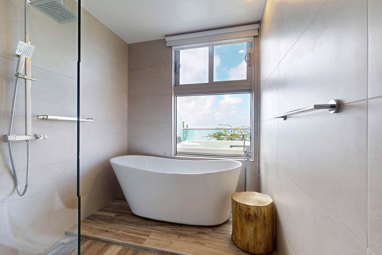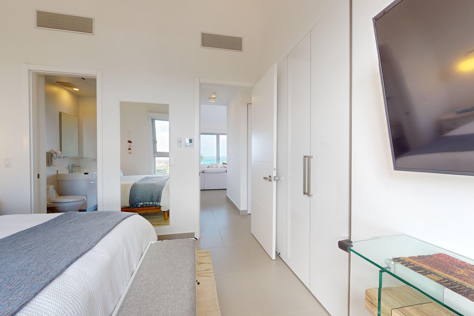 Enjoy the open-concept living and dining area, a fully equipped modern kitchen, and a separate TV room for extra relaxation space. Step out onto the expansive private terrace, where you’ll find a BBQ grill, hot tub, and panoramic views of the turquoise Caribbean Sea—a perfect setting for unforgettable sunsets.