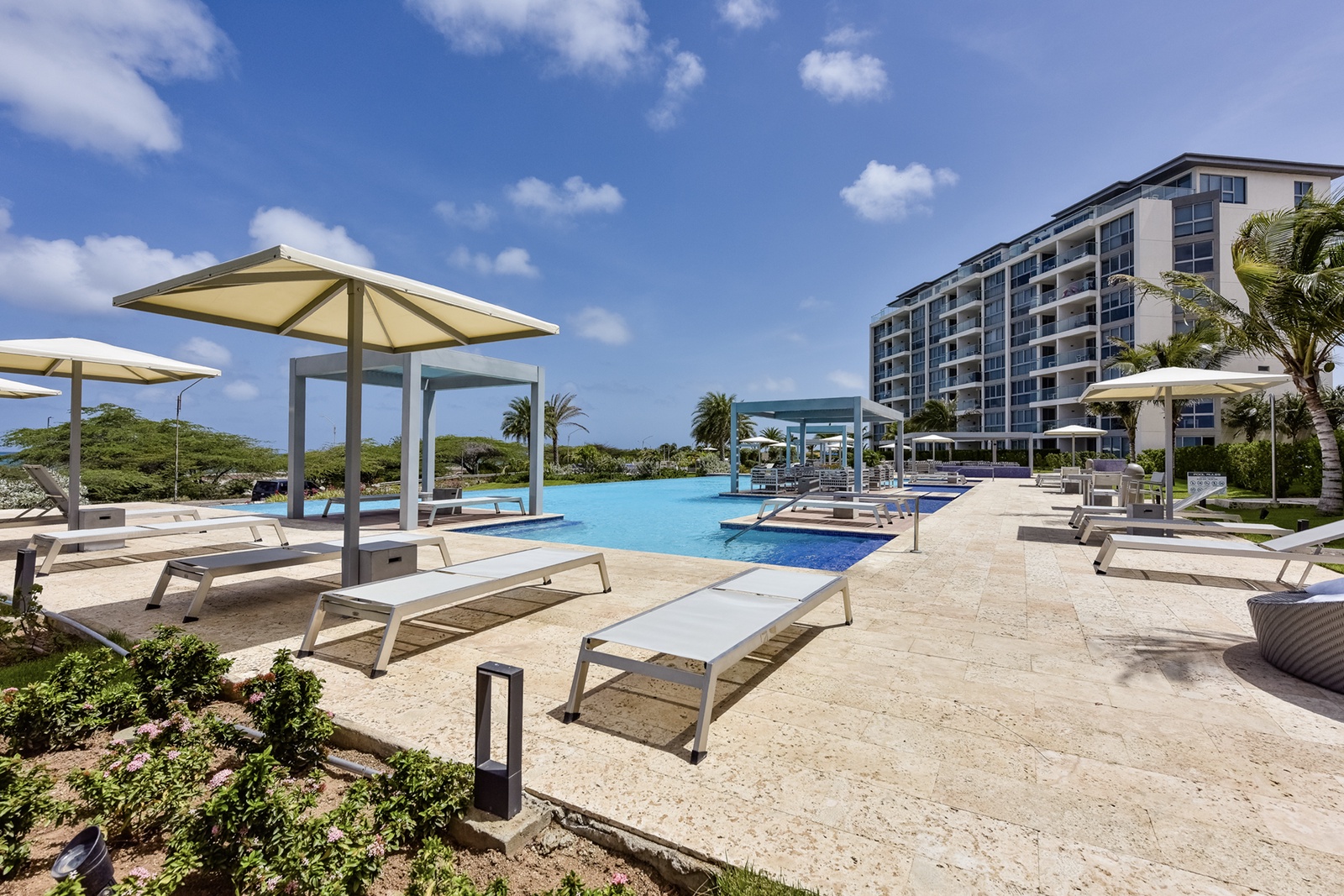 • A waterfront pool deck and infinity pool that create a relaxing environment in front of each building with poolside lounges and umbrellas from 8:00 am to 8:00 pm