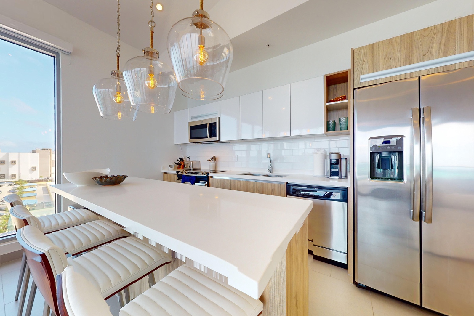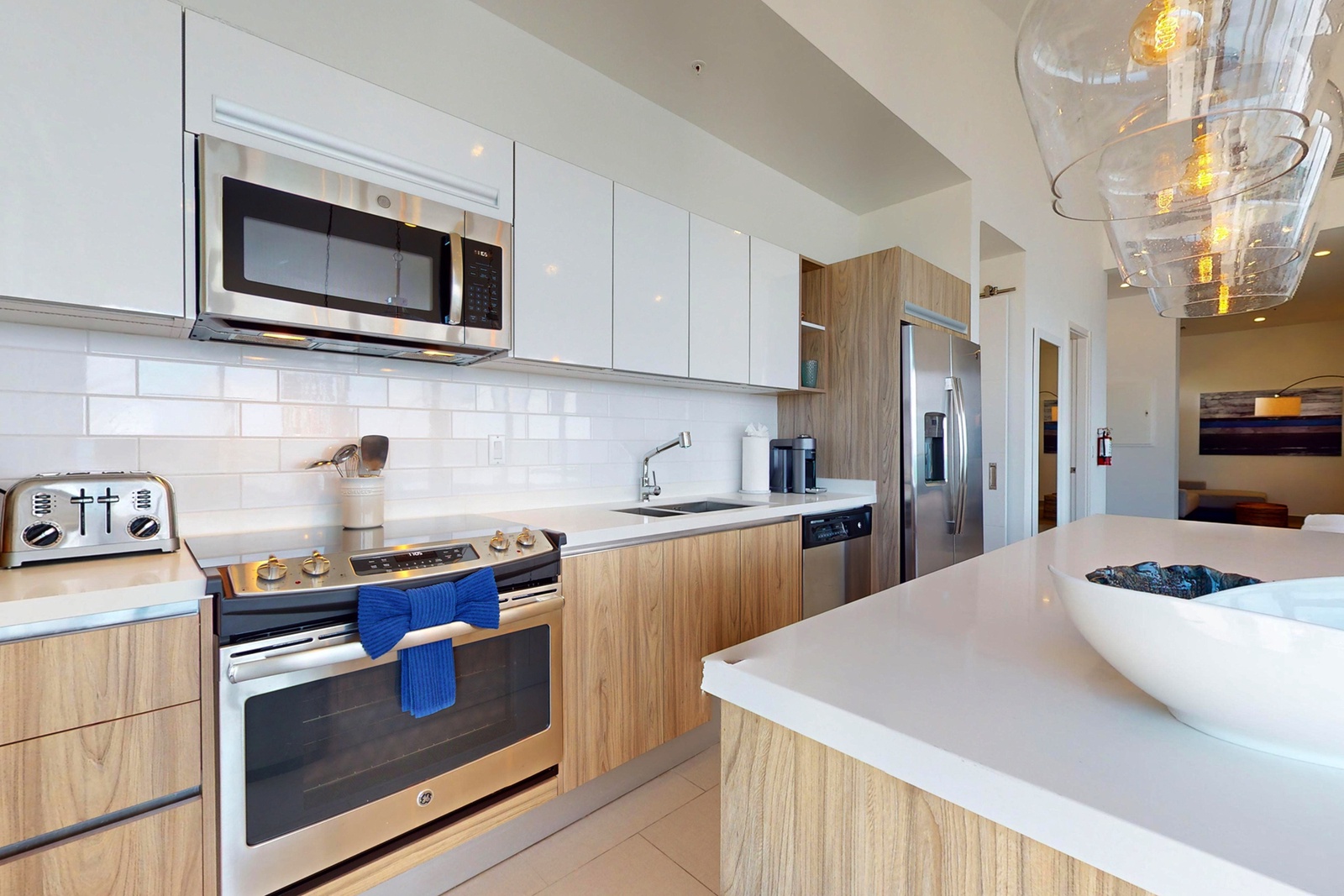 Guests have full access to Azure’s premium amenities, including pools, fitness center, and beachfront access.