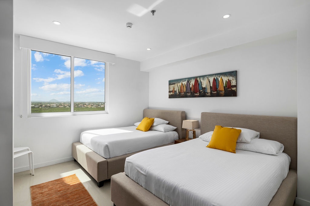 * Third Bedroom: Offers two full-size beds and a view of the serene Bubali Bird Sanctuary.