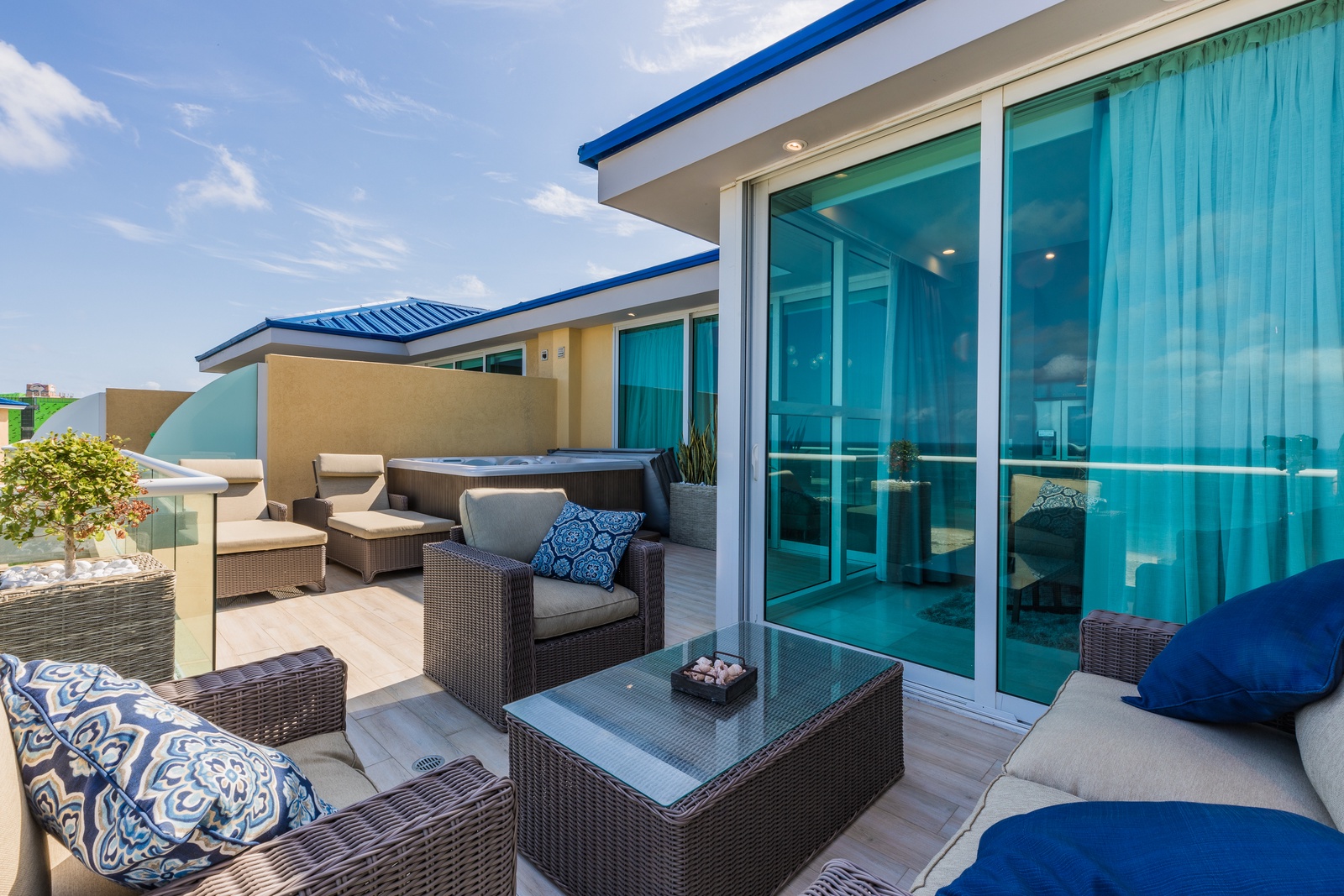 This is indeed the perfect condo for your family getaway. Duplex unit with a great terrace with jacuzzi. This three-bedroom penthouse located in Aquamarine Building on the top floor at Blue Residences will amaze you with its spectacular view of the Caribbean.