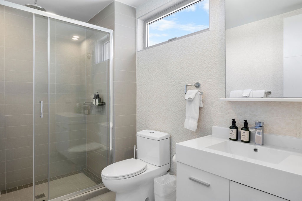 • Each bathroom has their own white towels and blue beach towels in the vanity.