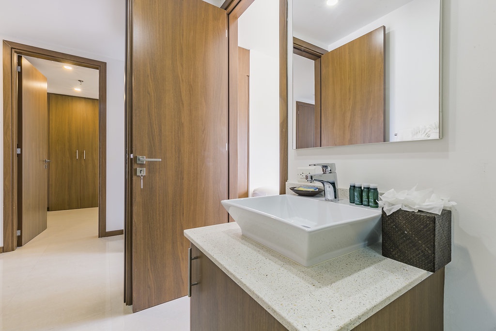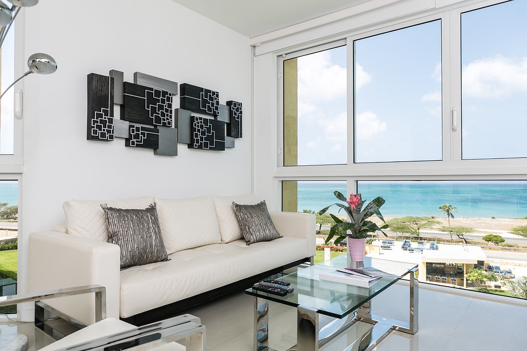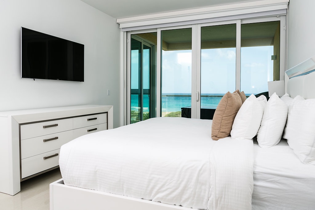 Modern and elegant 3BR Condo located at Aquamarine Building on the 4th floor of Blue Residences, looking at the infinity pools and restaurant together with beautiful Caribbean Sea. When you enter this Condo, you will be trapped by the gorgeous view from the stainless steel hi luxe living/dining space and a fully equipped kitchen with a counter and stools to be closer to the chef. The living room is complemented with a sofa bed. The master bedroom with a king-size bed and a beautiful view of the ocean. Access to the balcony from the living room or master bedroom. The second bedroom features two double-size beds and a view to the Bubali Bird Sanctuary. The third bedroom features a queen-size bed. Every bedroom has its own bathroom.
