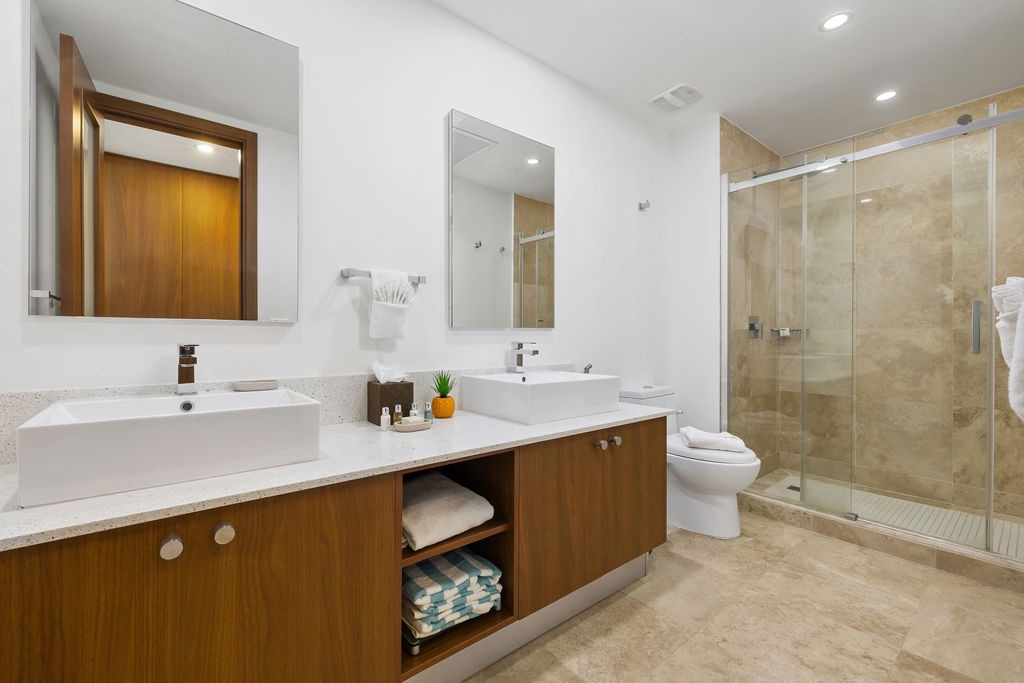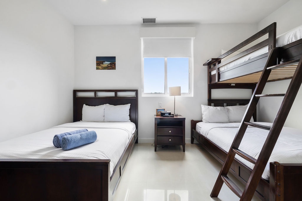 Two guest bedrooms with one Queen Bed and second one with two Full beds and bunker bed with additional twin size bed, each with their own bathroom, living area, washer and dryer. Free Wi-Fi and TV’s in all rooms. Maximum 8 guests.