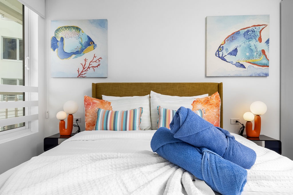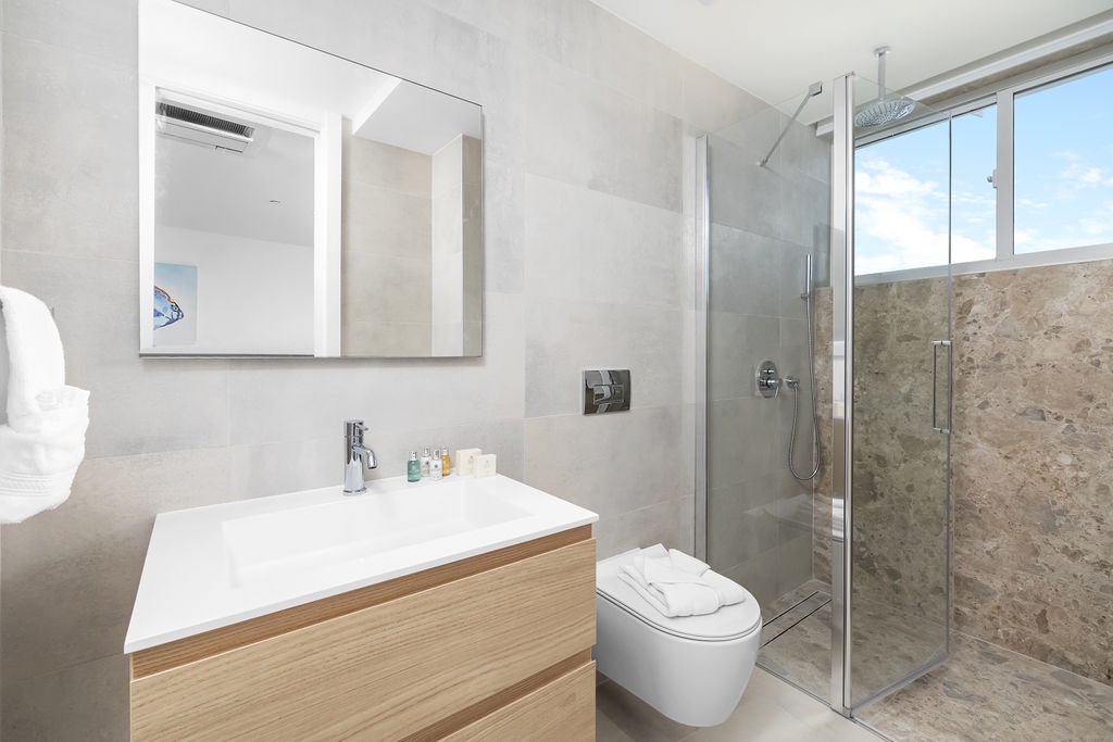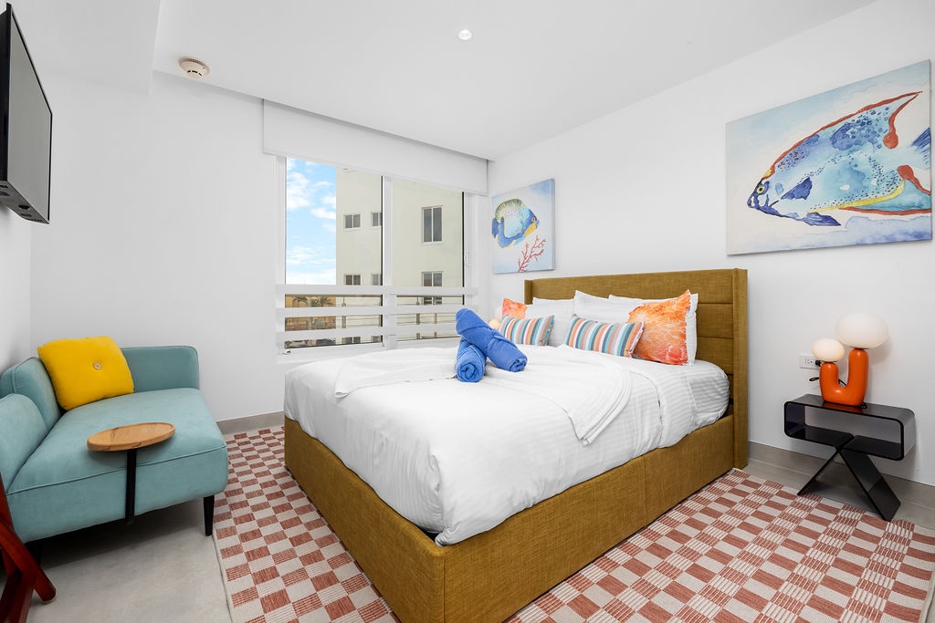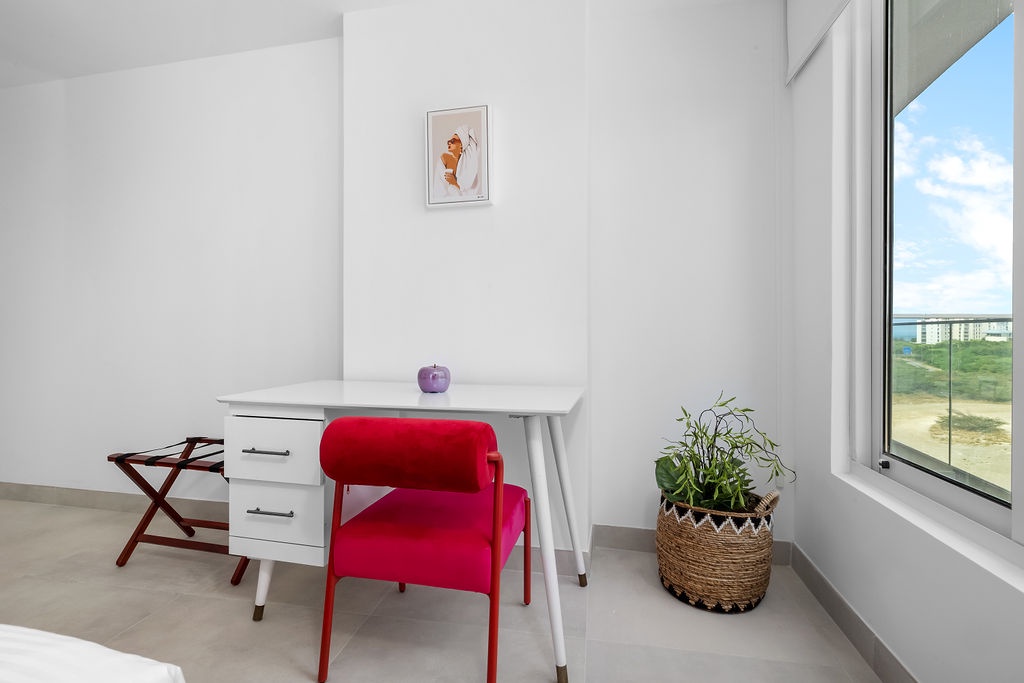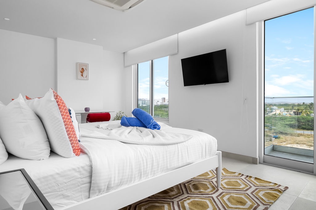 Guests have access to Atlantic 360’s amenities, including a pool, fitness center, and private parking. The residence is about a 15-20 minute drive from Queen Beatrix International Airport and is close to restaurants, shopping, and local attractions.