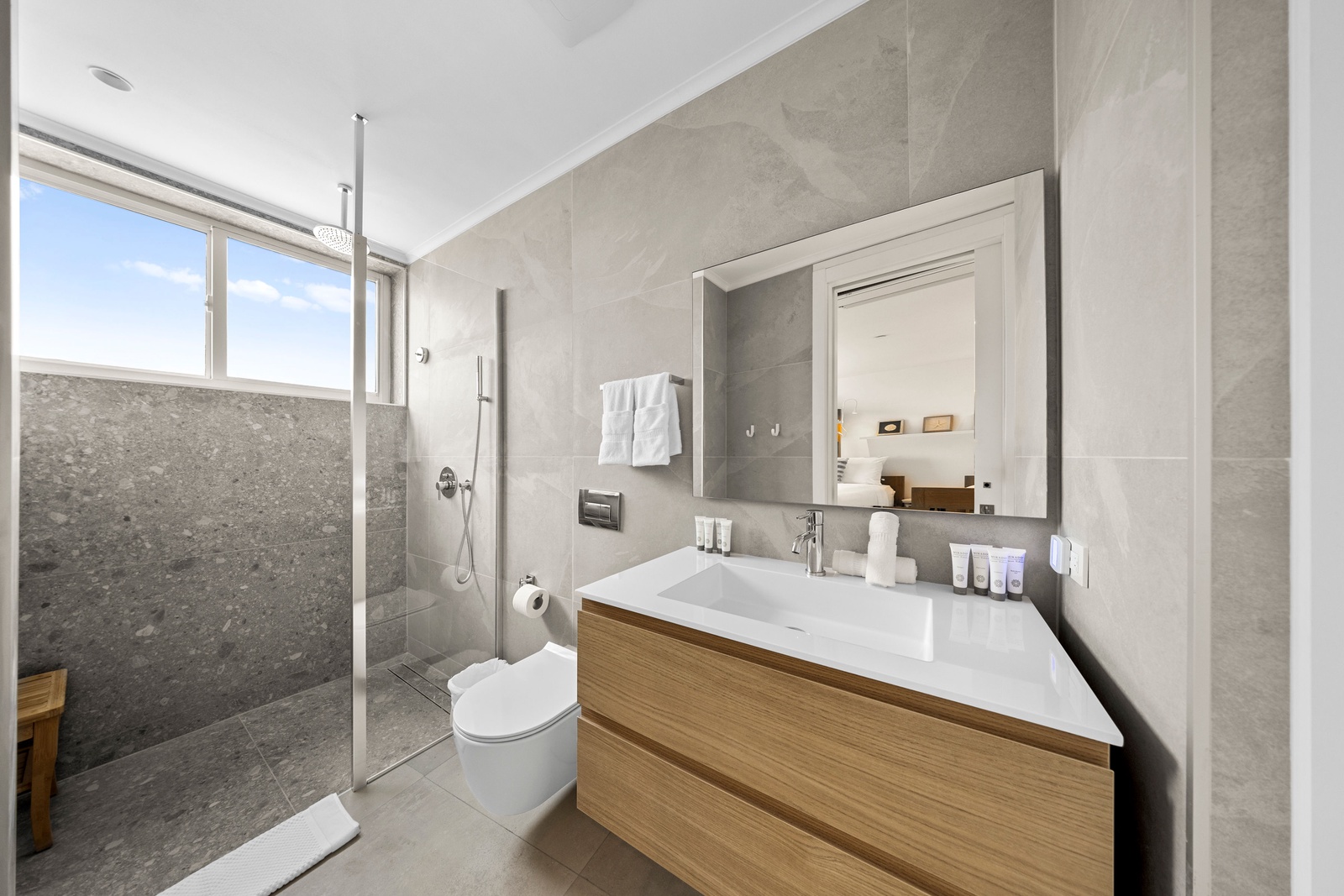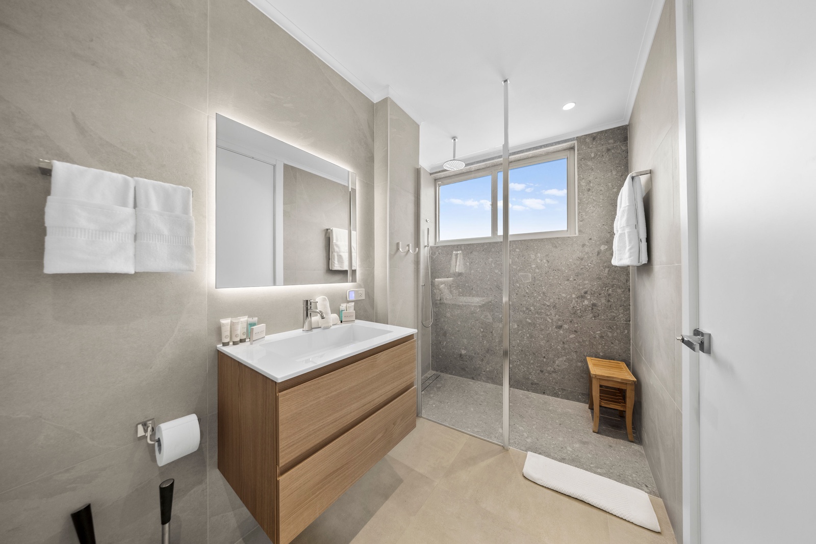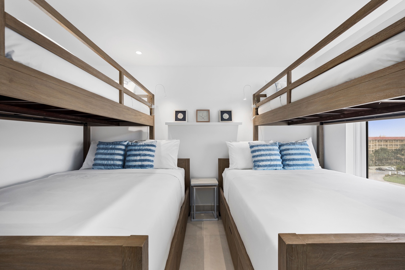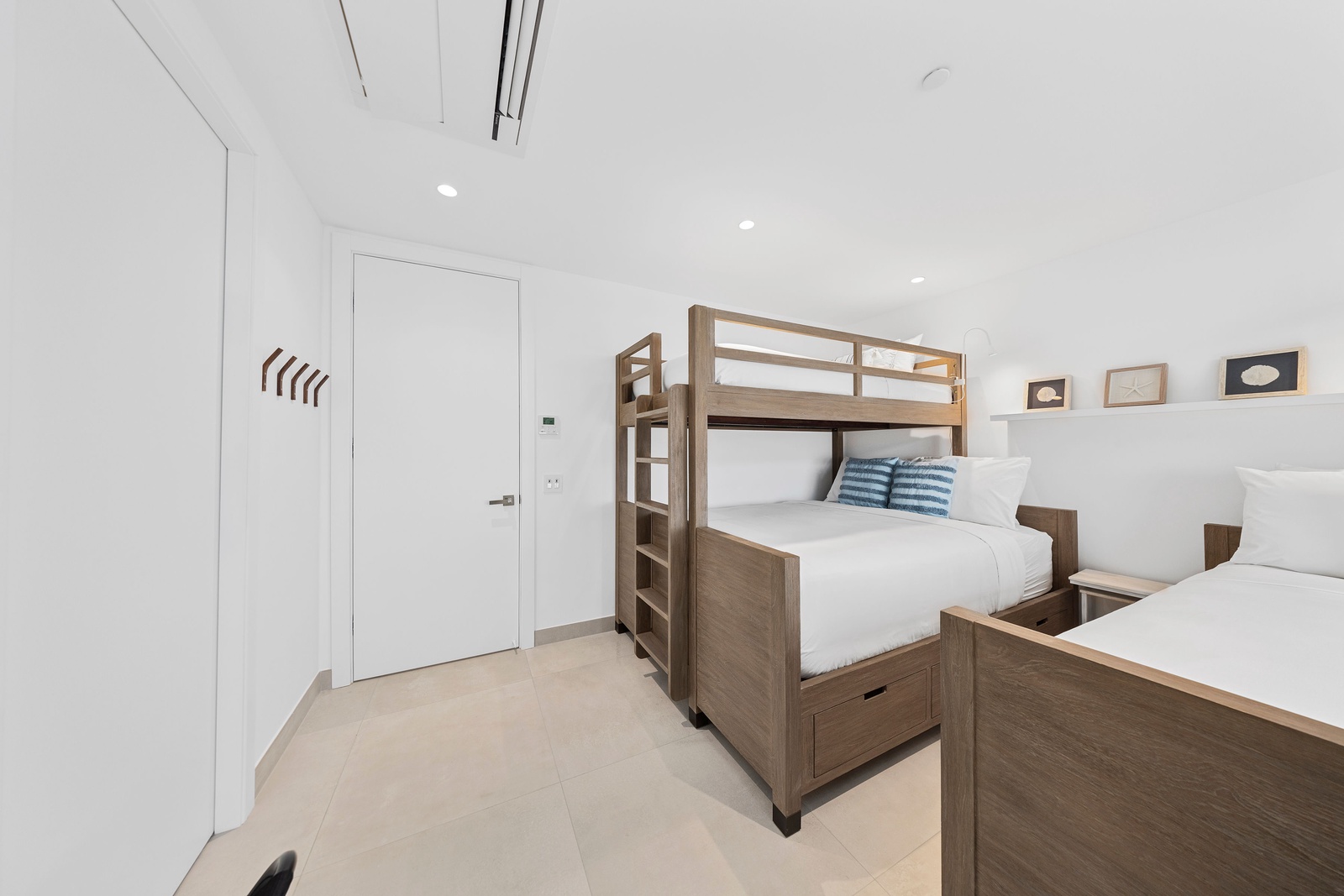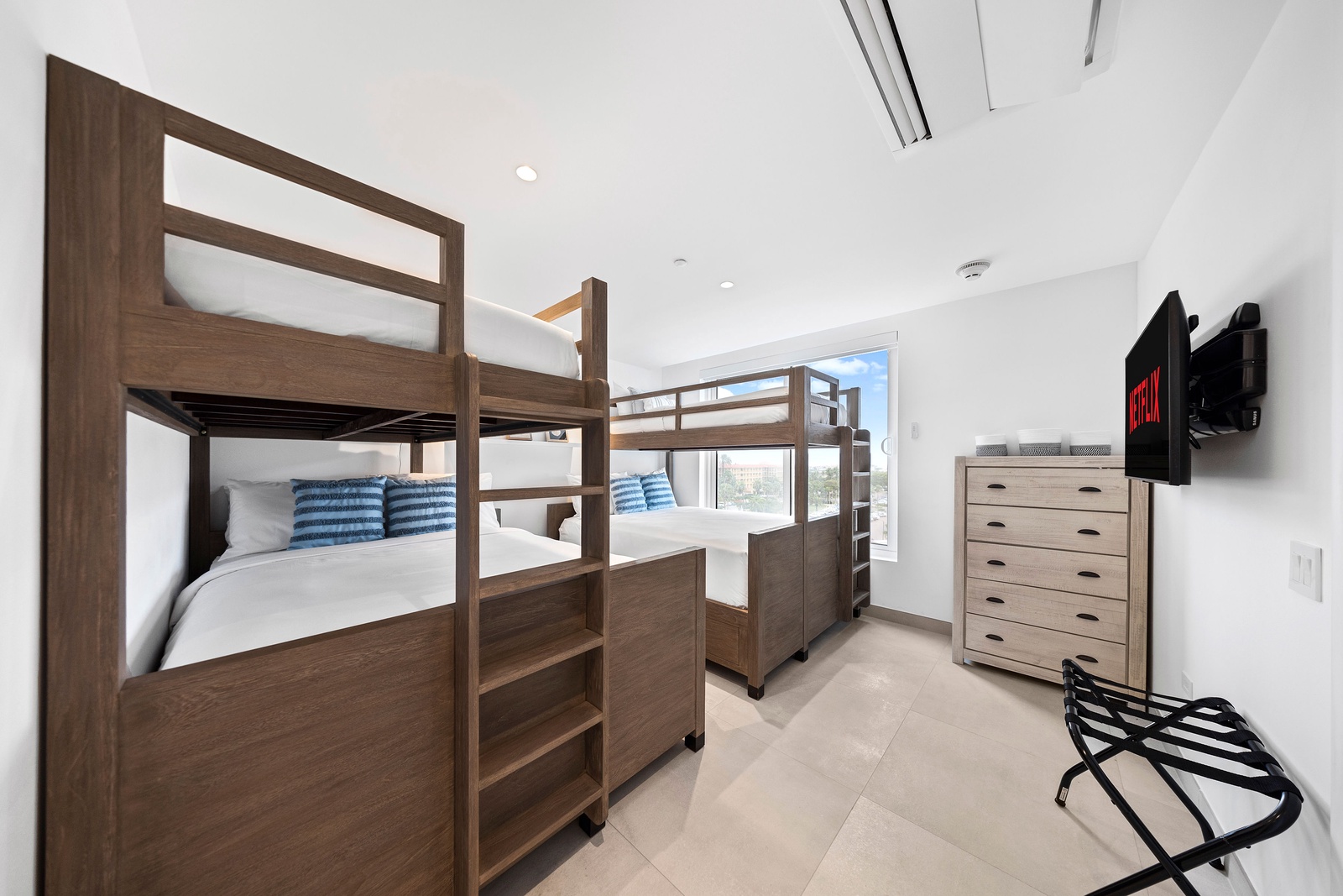 The luxurious master suite serves as your personal sanctuary, complete with a king-size bed, Smart TV, and a spa-inspired ensuite bathroom featuring a walk-in rain shower and sleek vanity. A second king bedroom provides equal comfort, while the third bedroom offers two queen-size bunk beds, perfect for families or groups. Each bedroom includes its own private bathroom with premium finishes, and a hallway half-bath adds extra convenience. A dedicated utility room with a washer and dryer ensures a seamless, stress-free stay.