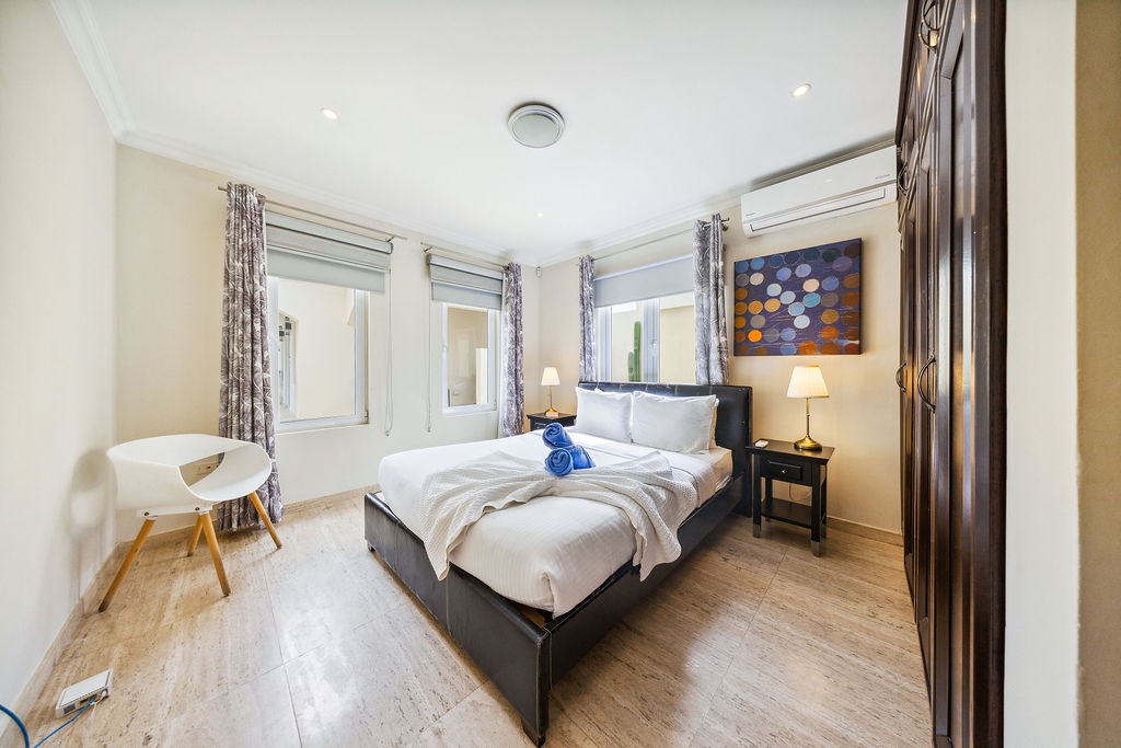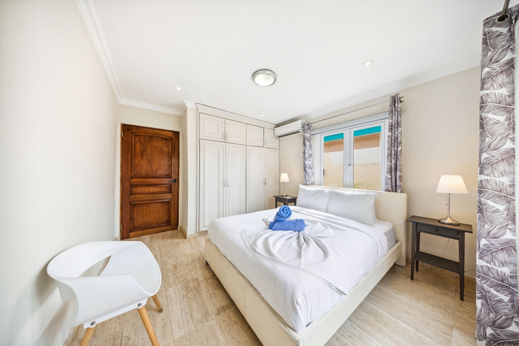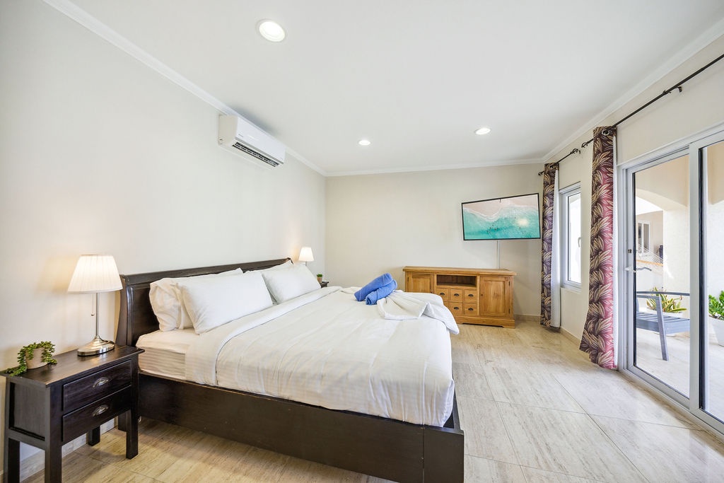 1 king bedroom, 2 queen bedrooms inside the main house, and an additional king bedroom located in a separate, small apartment just across the pool—perfect for guests seeking extra privacy. All bedrooms are air-conditioned and thoughtfully decorated for a restful stay.