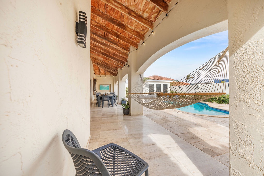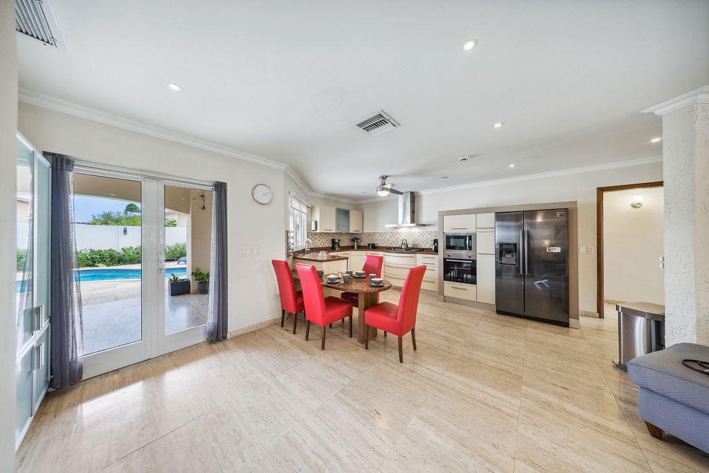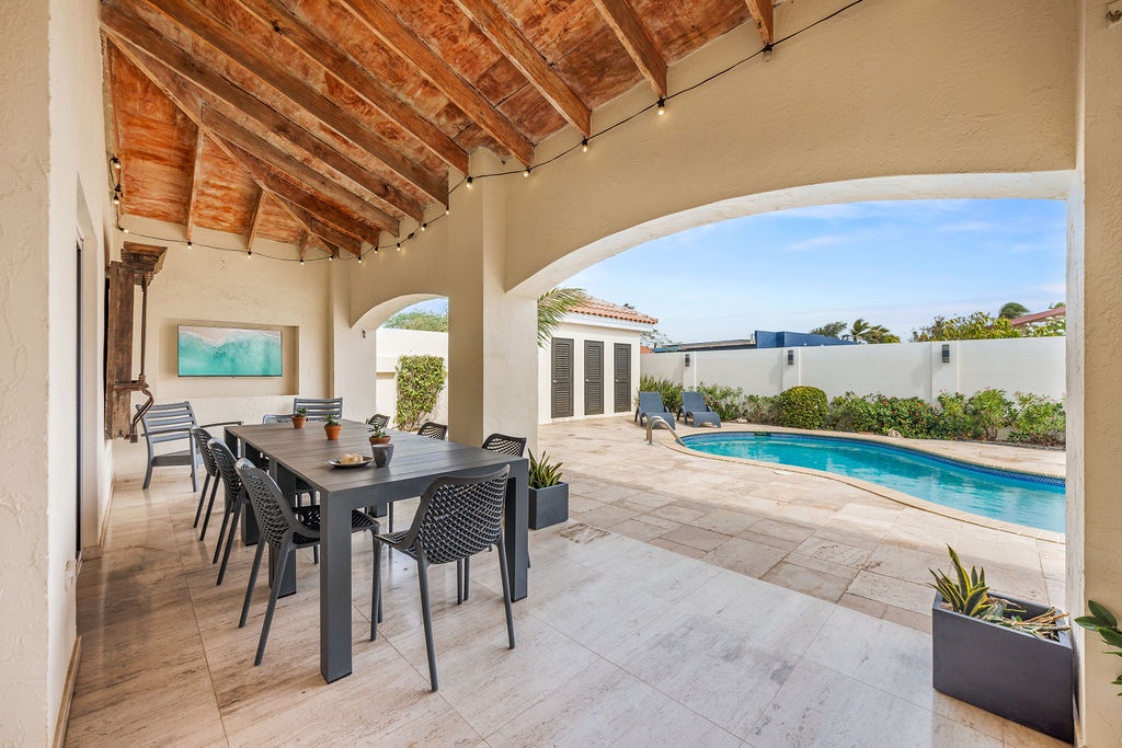 Step outside to your own private pool and spacious patio—a true highlight of this home. The outdoor terrace is designed for both relaxation and fun, with a BBQ grill, a large dining area, a Smart TV, and a cozy hammock where you can unwind and soak up the Caribbean vibes. Whether you're enjoying breakfast al fresco or an evening barbecue, this outdoor space is sure to be a favorite spot.