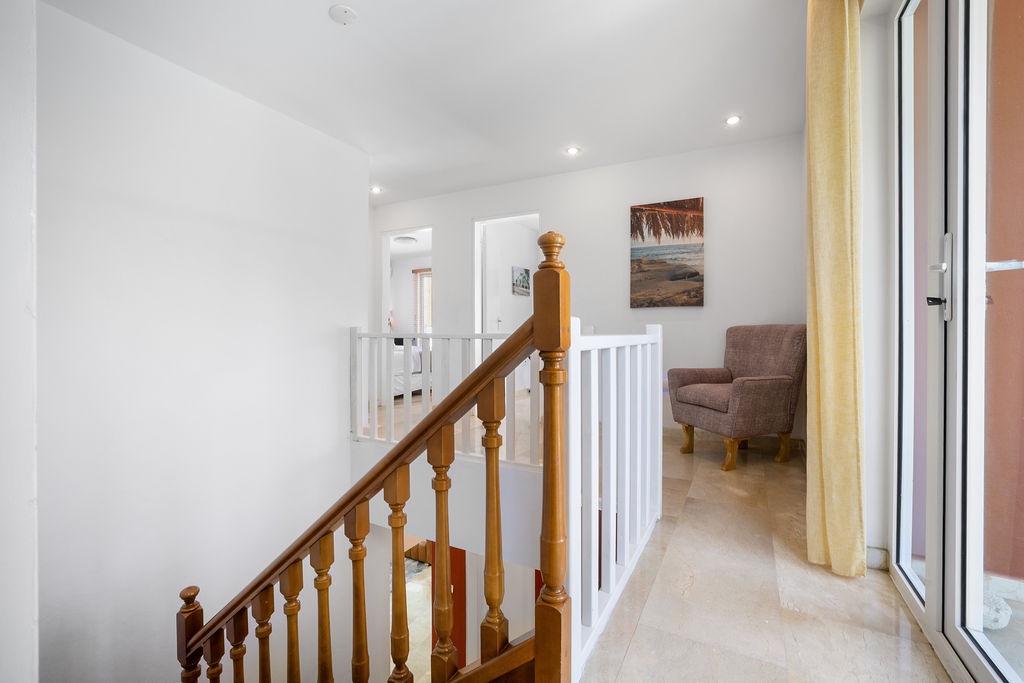 Inside, the villa is fully equipped for comfortable living. The kitchen has everything you need to prepare family meals, from quick breakfasts to sit-down dinners. A spacious dining area and a welcoming living room provide plenty of space to gather, play games, or enjoy a movie night together. For added convenience, a washer and dryer are available, making longer stays easy and stress-free.