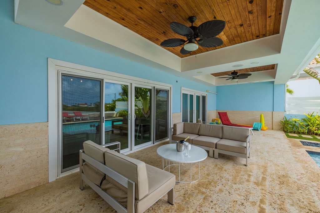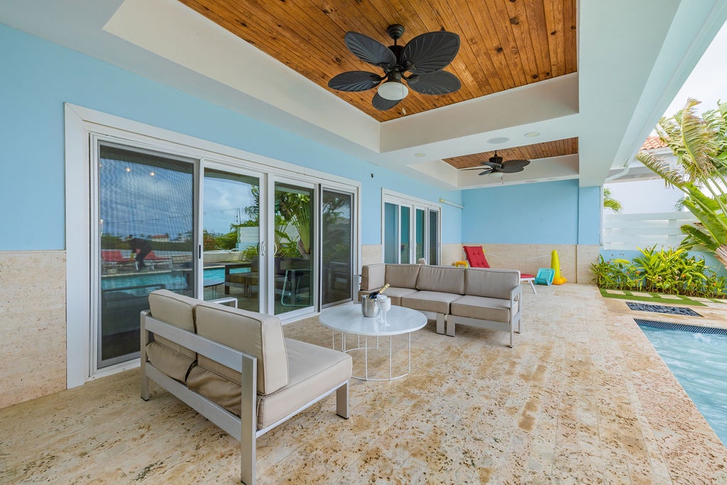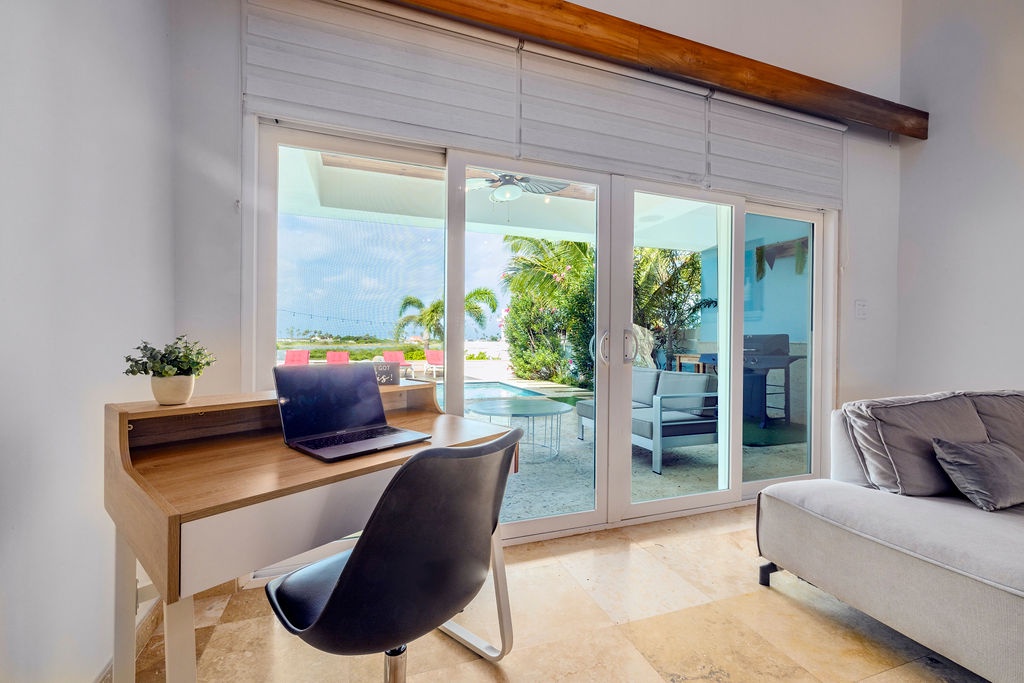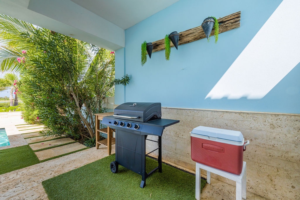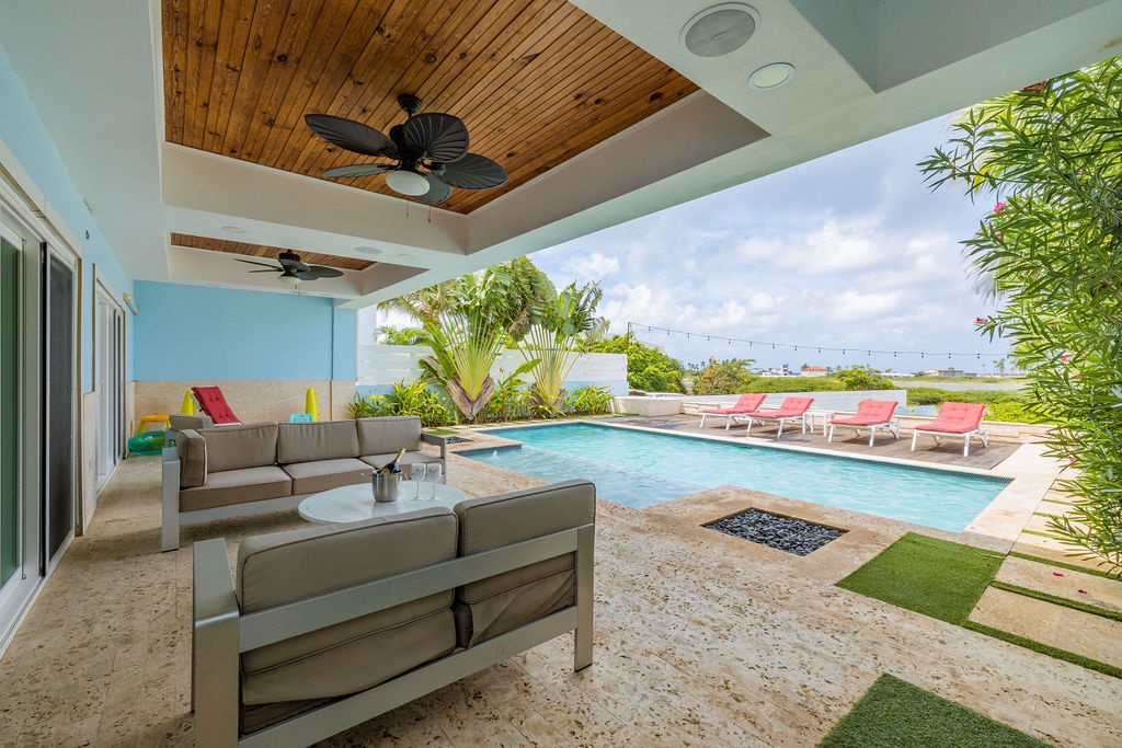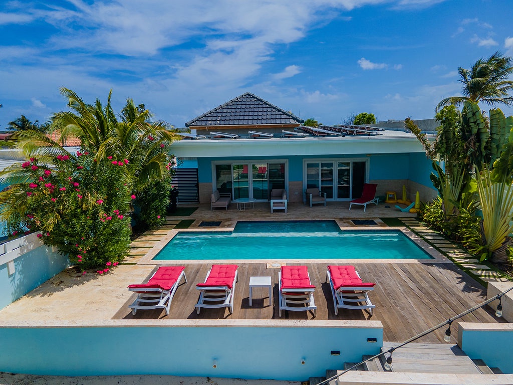 Guest has private access to the home, front patio, back patio, pool and grill. Additional areas that the guests may access are the communal ‘beachy’ backyard and sunset pergola. Guest also have unlimited access to the Racquet Club Aruba amenities, which includes tennis courts, a gym, pool, game room, and mini soccer field. A 1 minute ride from the property.