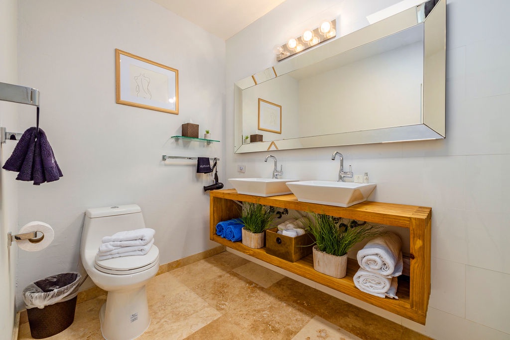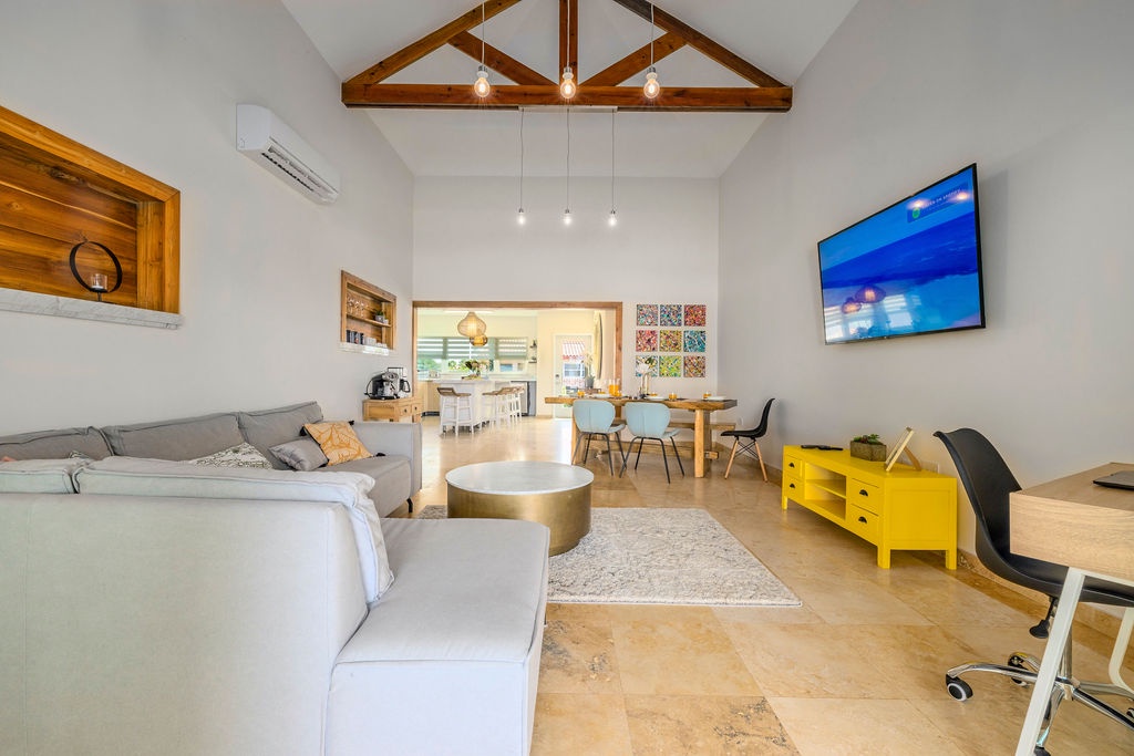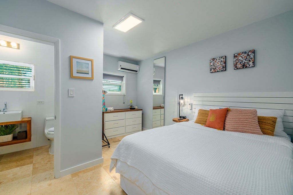 This beautiful villa features 3-bedrooms each with its own bathroom, a fully equipped kitchen and open space living area. The master bedroom with a king-size bed, the second and third bedroom each with a queen-size bed. This house can sleep up to 6 adults.