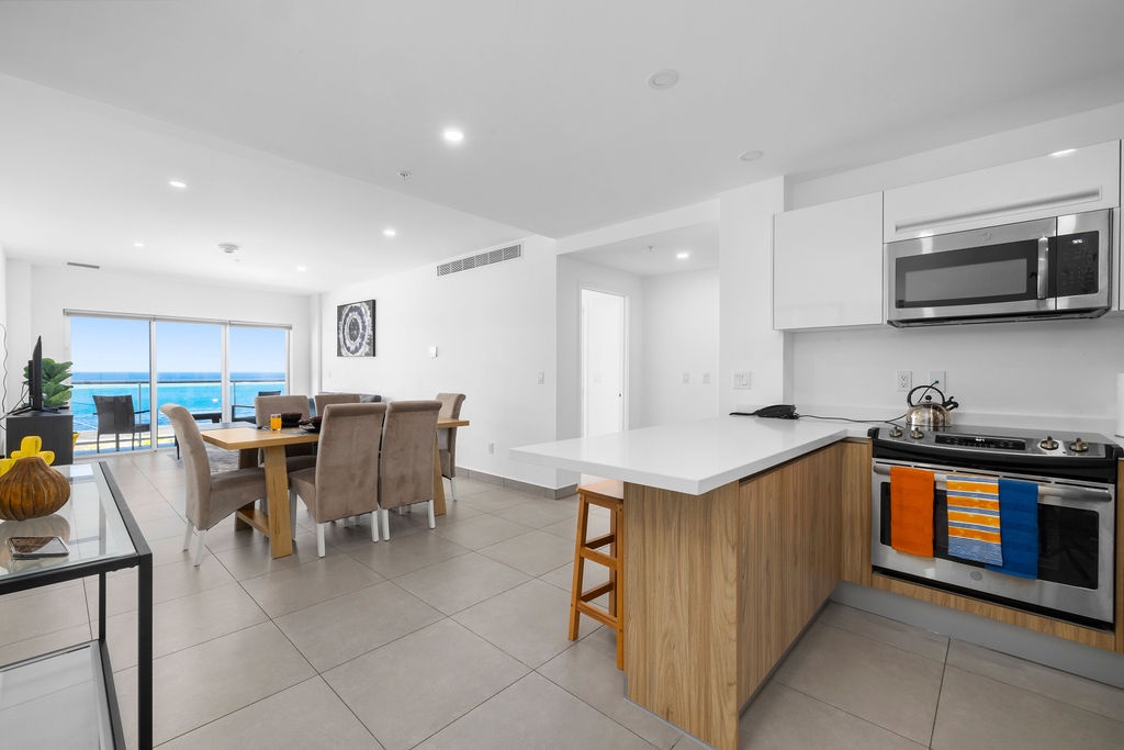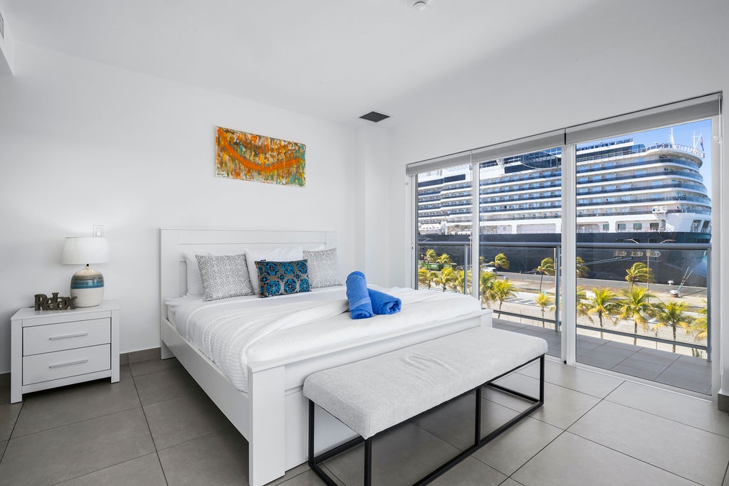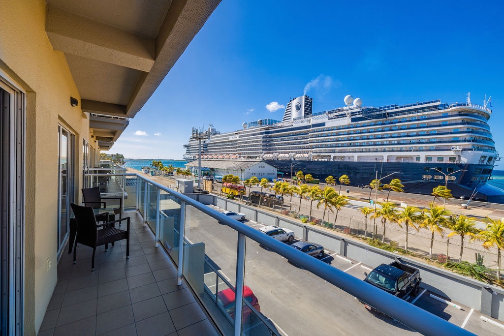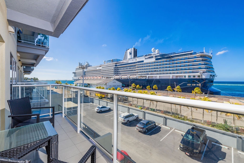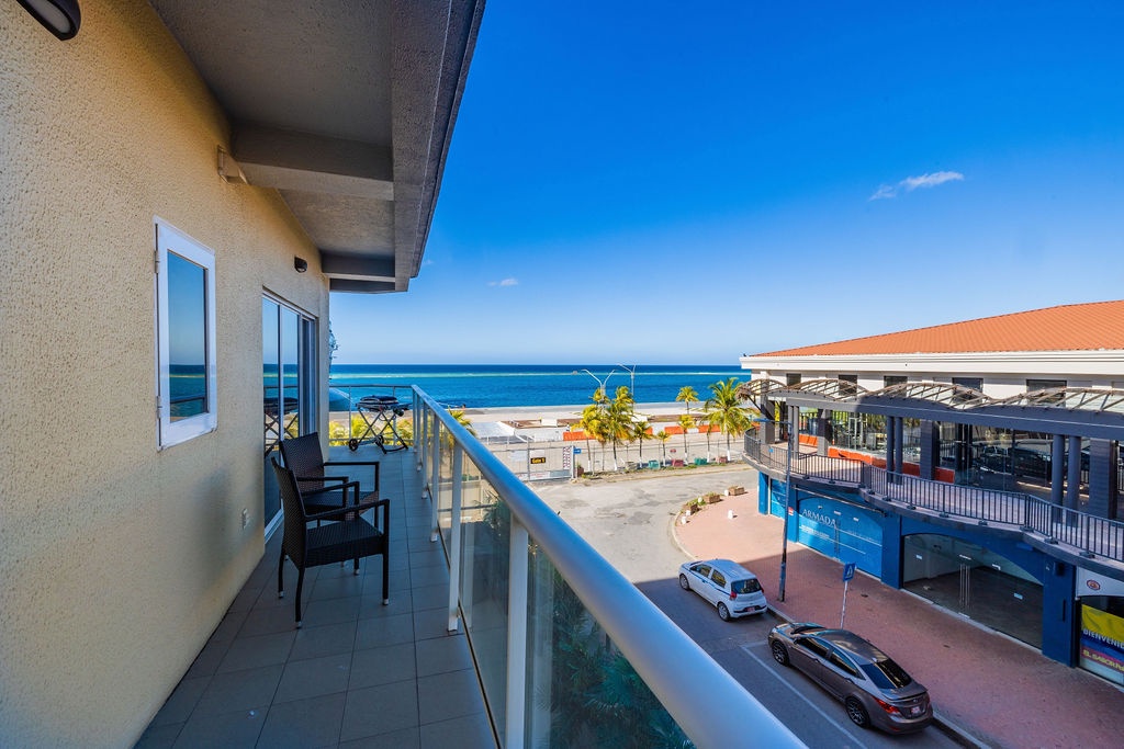 • A stunning infinity pool overlooking the Oranjestad Marina wit tropical deck create a relaxing environment at the center of the complex with poolside lounges and umbrellas from 8:00 am to 9:00 pm.