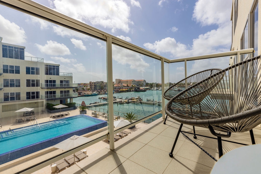 After a day of exploration, unwind by the infinity pool overlooking the picturesque Oranjestad Marina. Lounge on plush chairs in the tropical breeze, or take a dip in the refreshing crystal-clear water. Security is 24/7, ensuring peace of mind as you enjoy amenities like free Wi-Fi, cable TV, and a washer/dryer right in your unit.