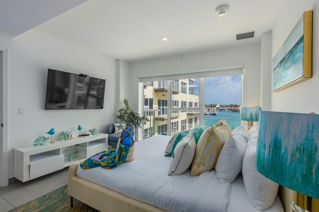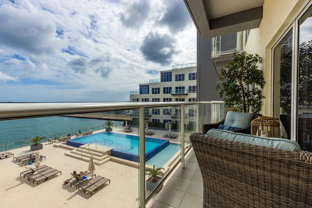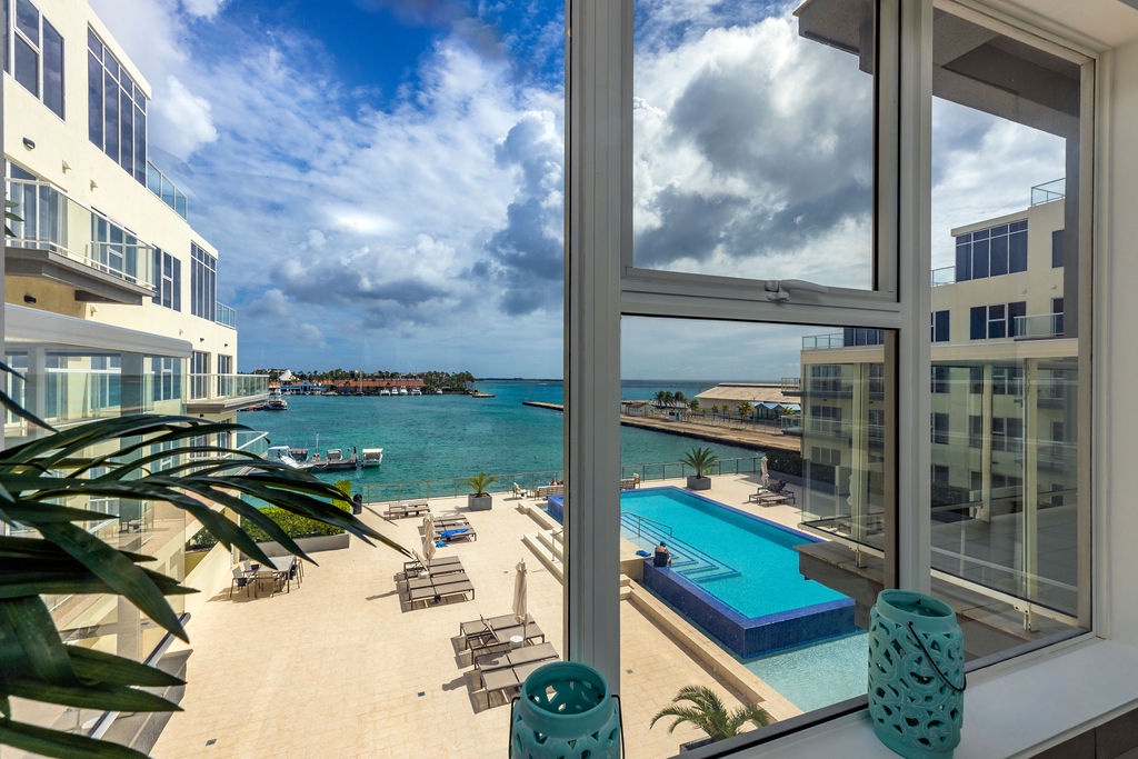 • A stunning infinity pool overlooking the Oranjestad Marina wit tropical deck create a relaxing environment at the center of the complex with poolside lounges and umbrellas from 8:00 am to 9:00 pm.
