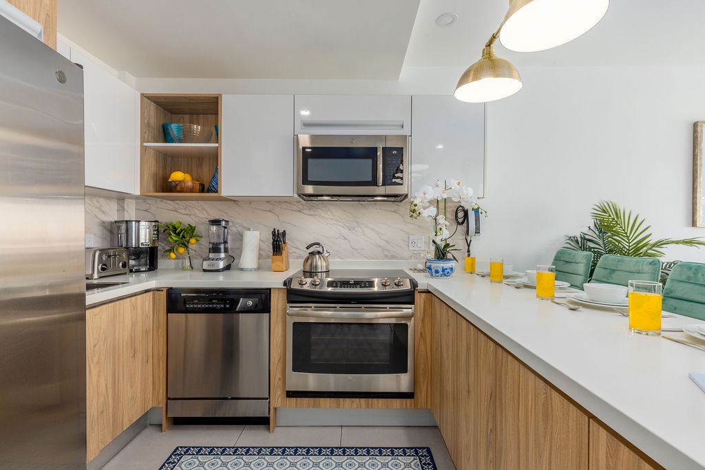 This air-conditioned 2-bedroom condo features one king size bed, two twin beds, two bathrooms with shower, hairdryer, and an equipped kitchen and everything that you need for basics cooking is in here. Washer and dryer in the unit. Sofabed. Free Wi-Fi and Cable TV. Unplug and make your vacation a memorable one!