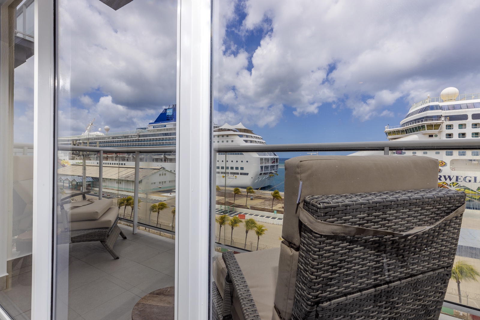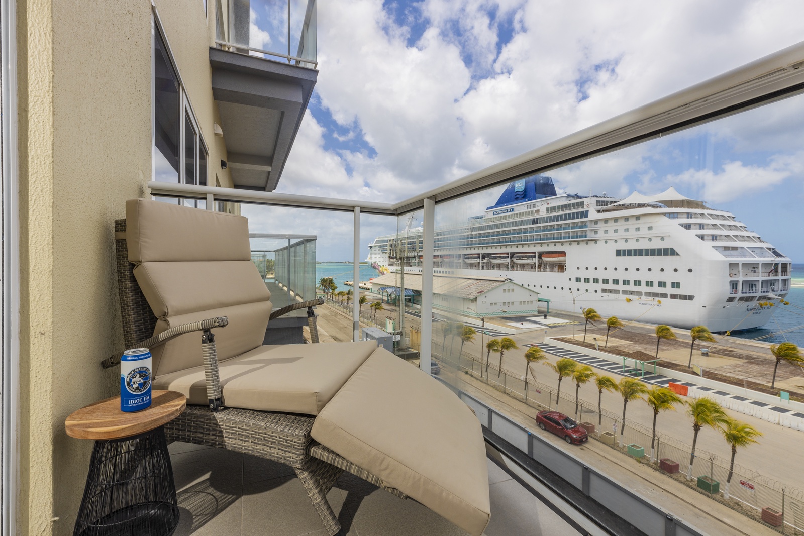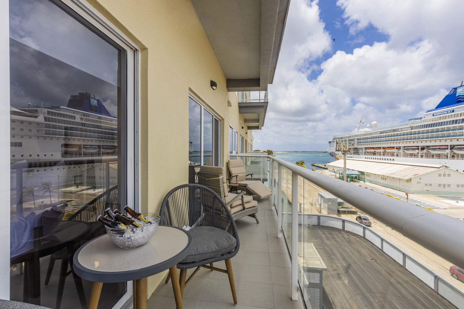 • A stunning infinity pool overlooking the Oranjestad Marina wit tropical deck create a relaxing environment at the center of the complex with poolside lounges and umbrellas from 8:00 am to 9:00 pm.