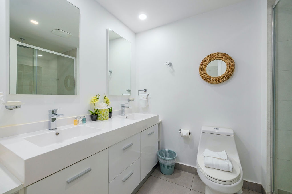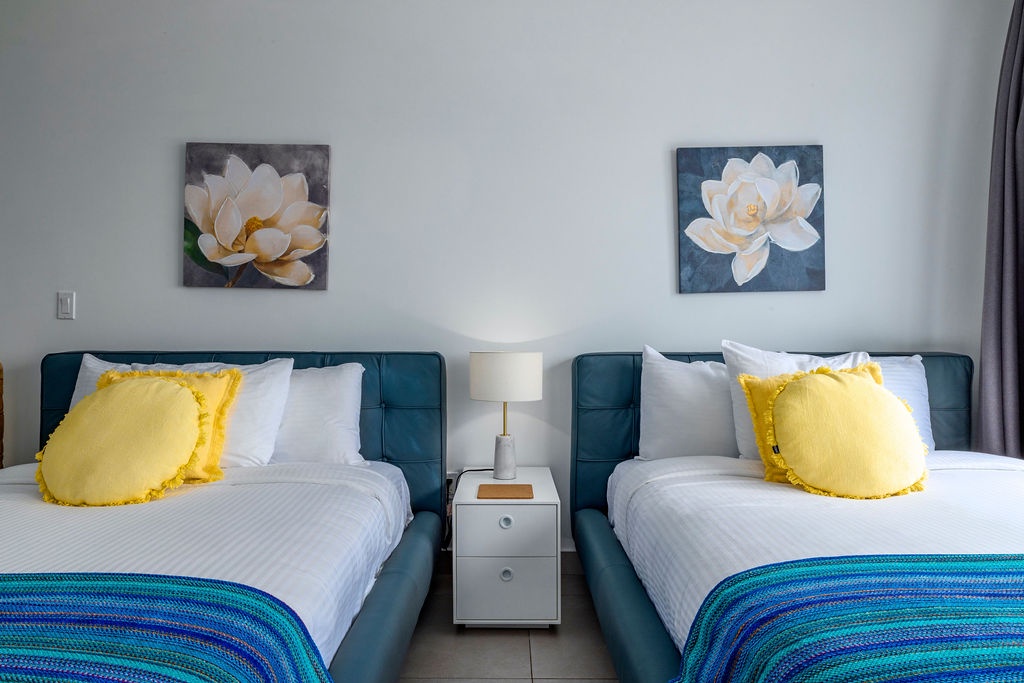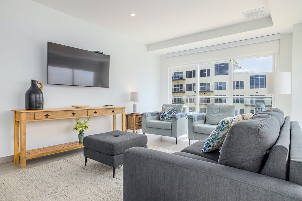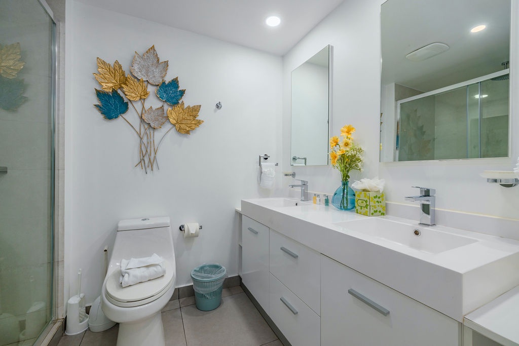 This spacious 1441 square foot two-bedroom unit is one of the largest 2-bedroom units in this condo building with floor to ceiling windows to maximize the ocean views. The Master bedroom features one king bed and a private bathroom and a door to the balcony. The second bedroom has two full beds and a private bathroom. There is a queen sofa bed for additional sleeping. Unit 407 has a Washer and dryer, two separated and individual air conditioning units, free WIFI, Cable TV with two smart TV’s and a Weber barbeque; all to make your stay relaxed, happy, and comfortable. Enjoy!