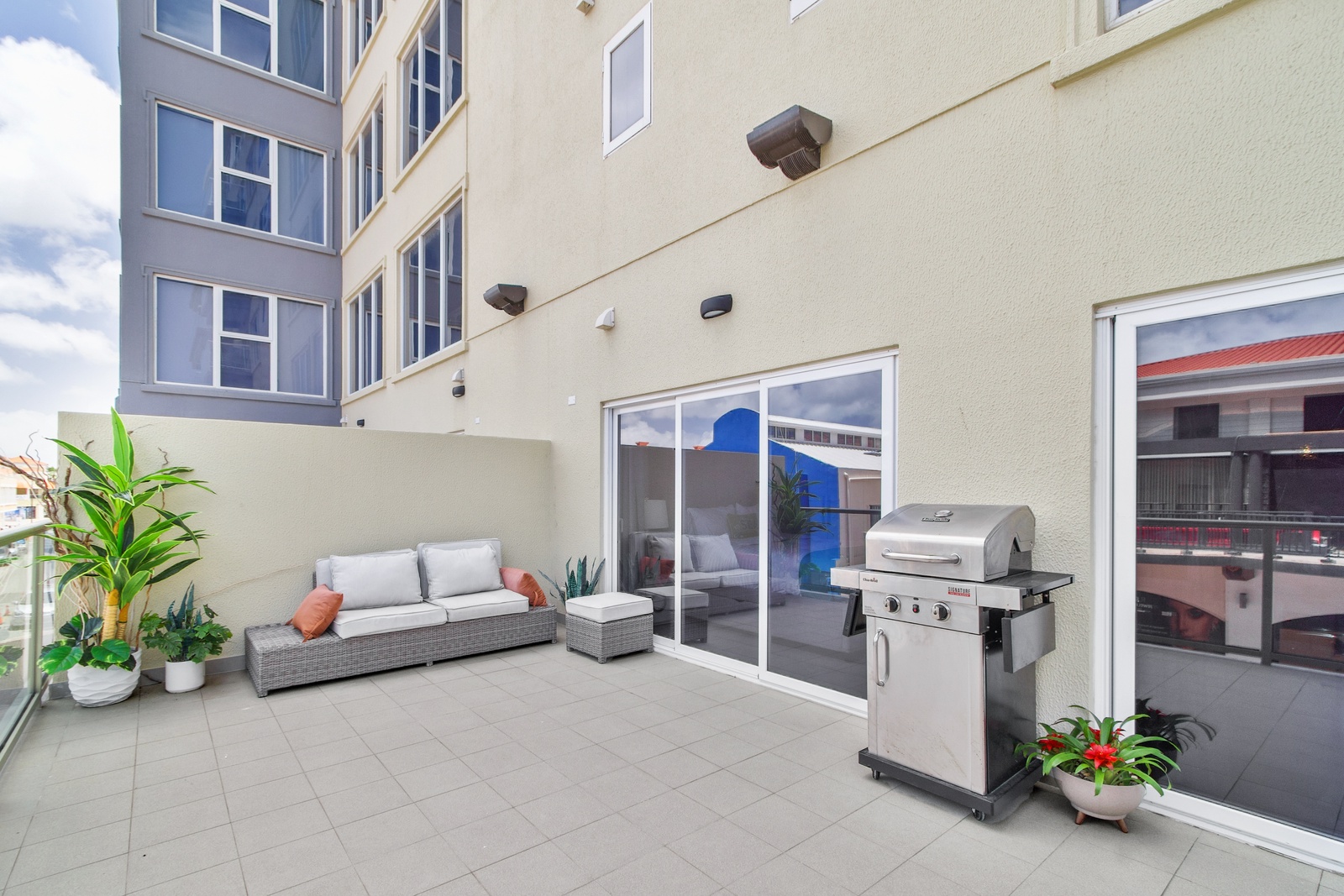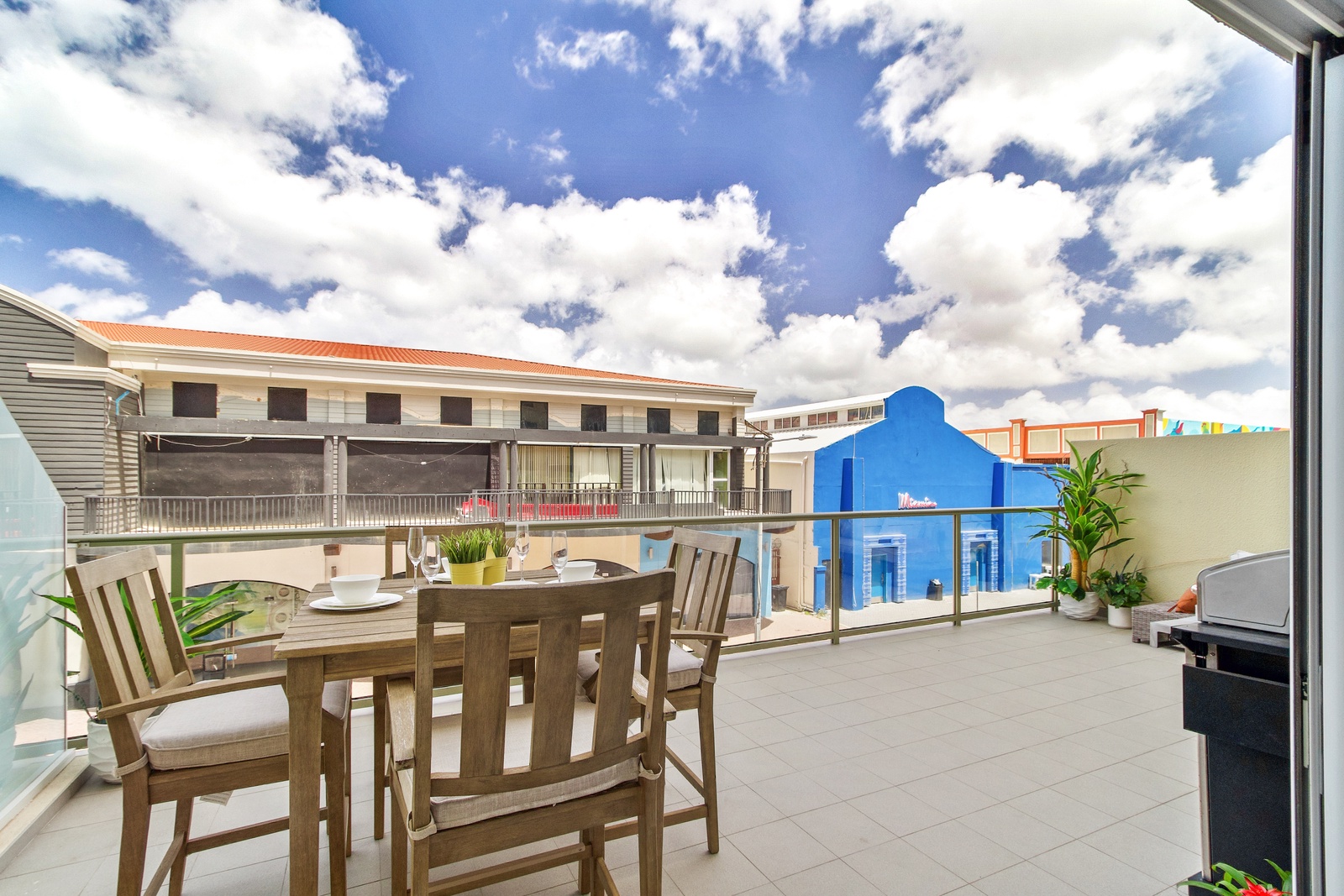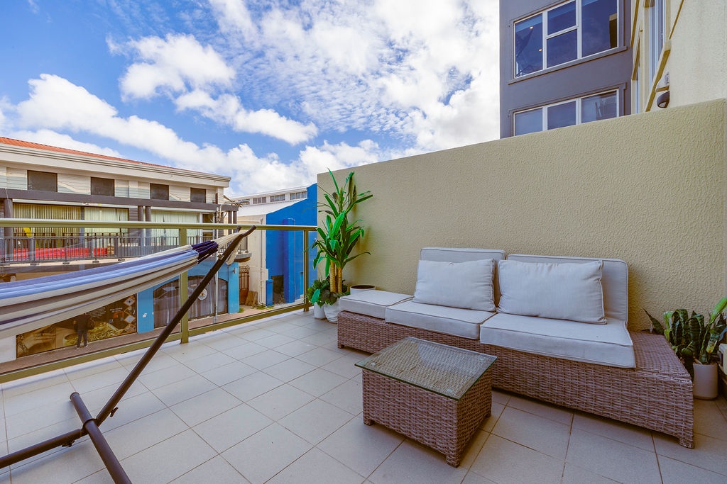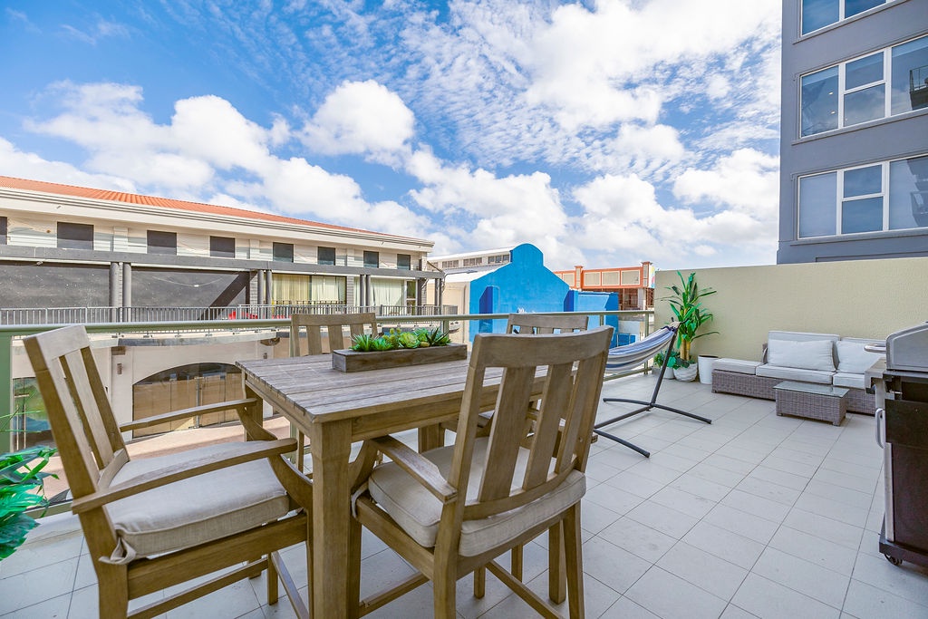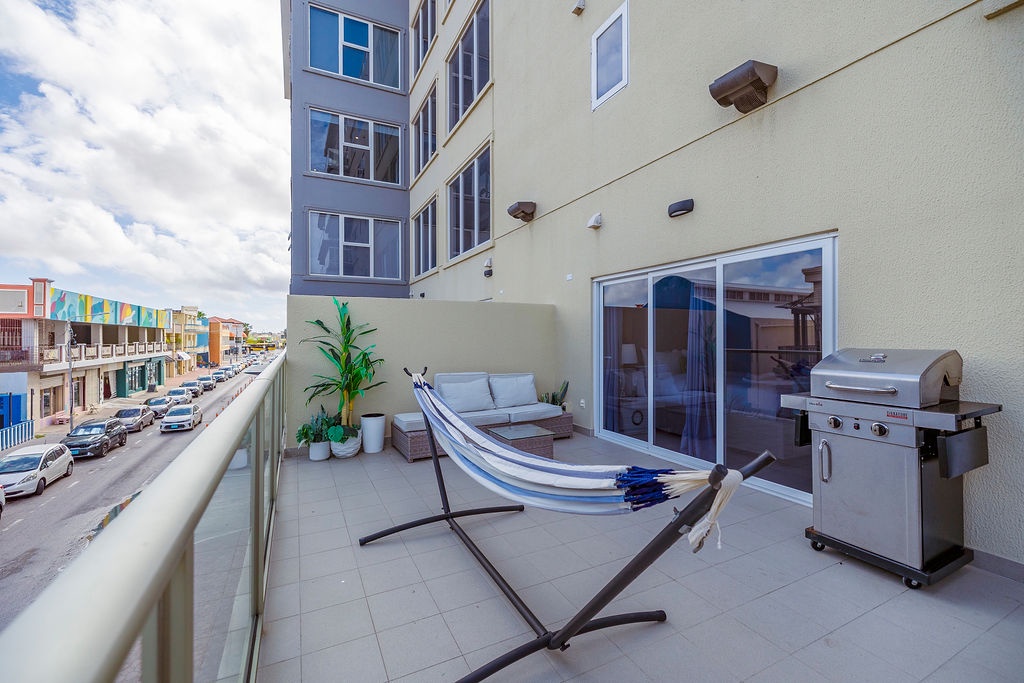 One step on to the XL balcony with hammock, BBQ grill, Tables and chairs where you can sit with your beverage of choice and enjoy the happenings of the downtown entertainment vibe.